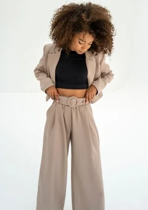 Shani - Szerokie spodnie z paskiem Beżowe
