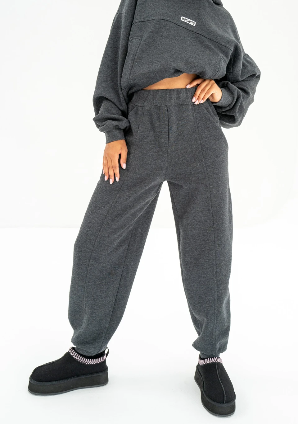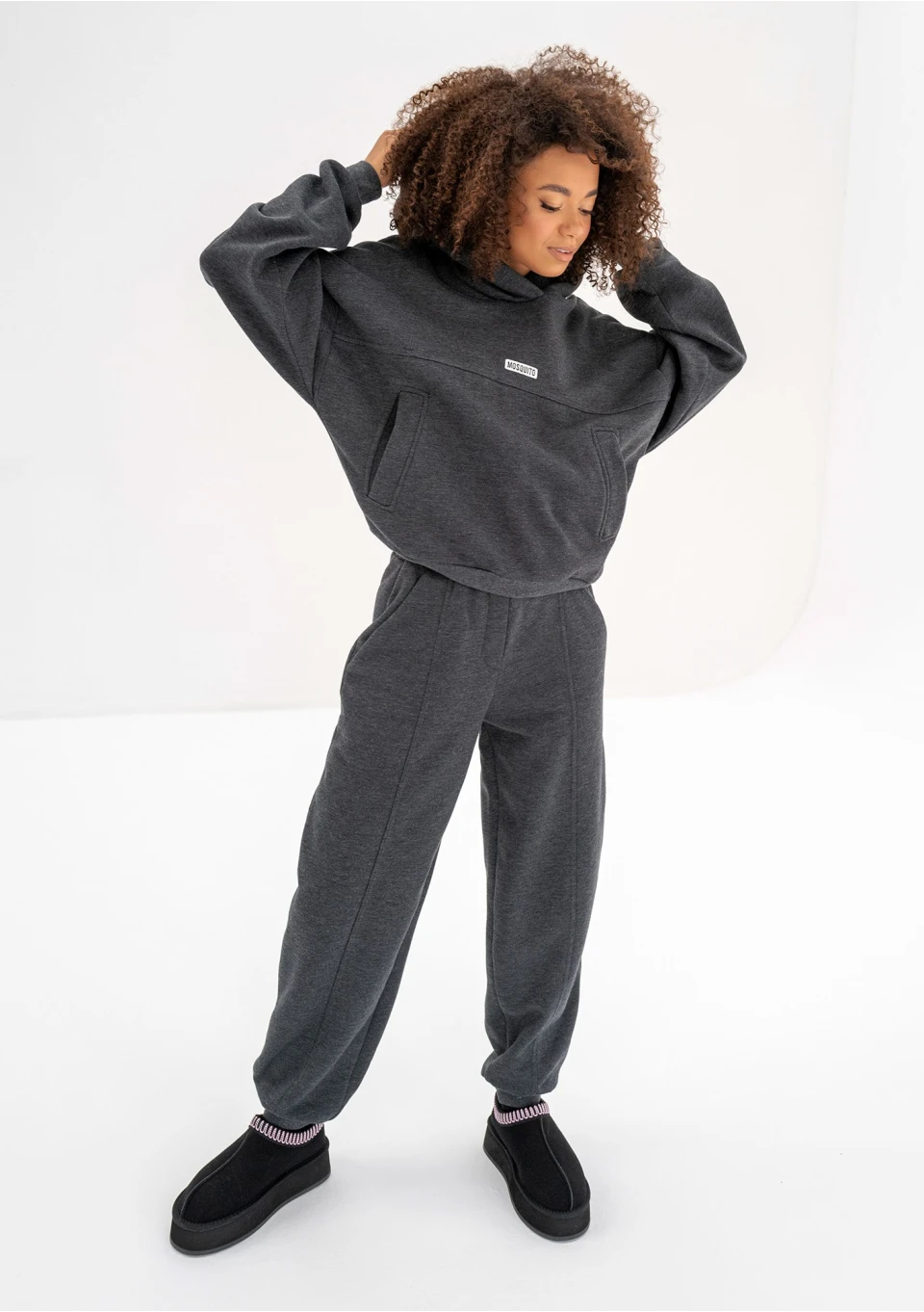 Camp to nasz nowy fason, wzbogacony o ozdobnie prowadzone szwy i imitację rozporka. Spodnie dresowe mają bardzo luźny krój i są uszyte z miękkiej dzianiny z meszkiem.