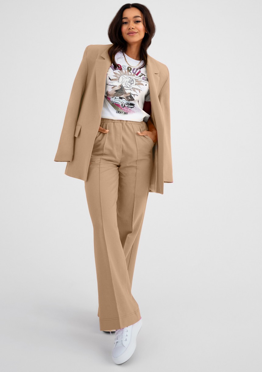Ellis - Luźne spodnie z kantami Beżowe