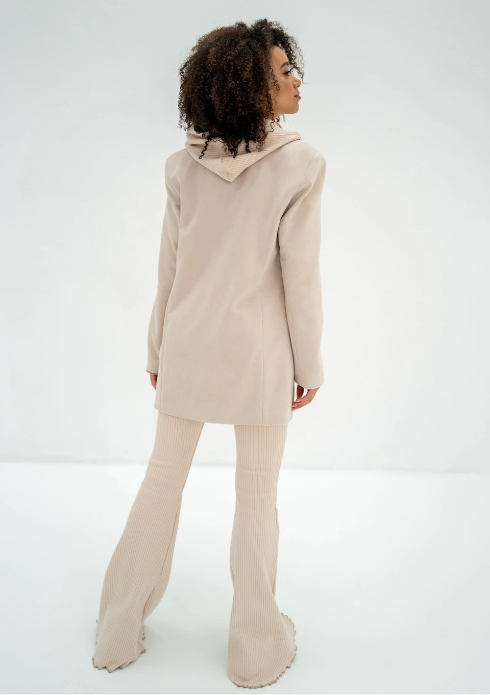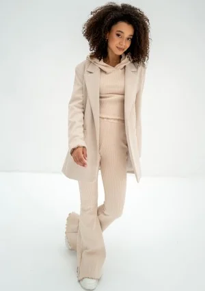 Clove - Spodnie z prążkowanej dzianiny Beżowe