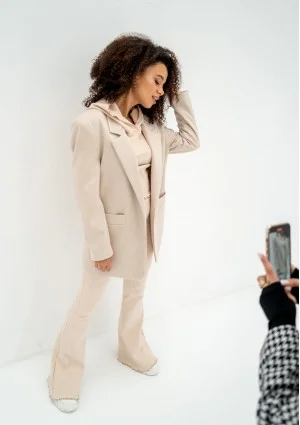 Beżowe, bawełniane spodnie dla kobiet, uszyte z prążkowanej dzianiny, oferują zmysłowe dopasowanie, które pięknie akcentuje sylwetkę. Ich design nie tylko podkreśli Twoje kształty, ale również zapewni komfort noszenia na co dzień. Wyróżniają się jakością wykonania. Są szyte w Polsce, co gwarantuje staranność wykonania i dbałość o detale. Użytkowanie naturalnych materiałów zapewnia komfort i przyjazność dla skóry, a prosty model z rozszerzaną nogawką bez nadruków dodaje im wszechstronności. Dzięki temu łatwo wkomponują się w różnorodne stylizacje, od casualowych po te zaplanowane na bardziej eleganckie okazje.