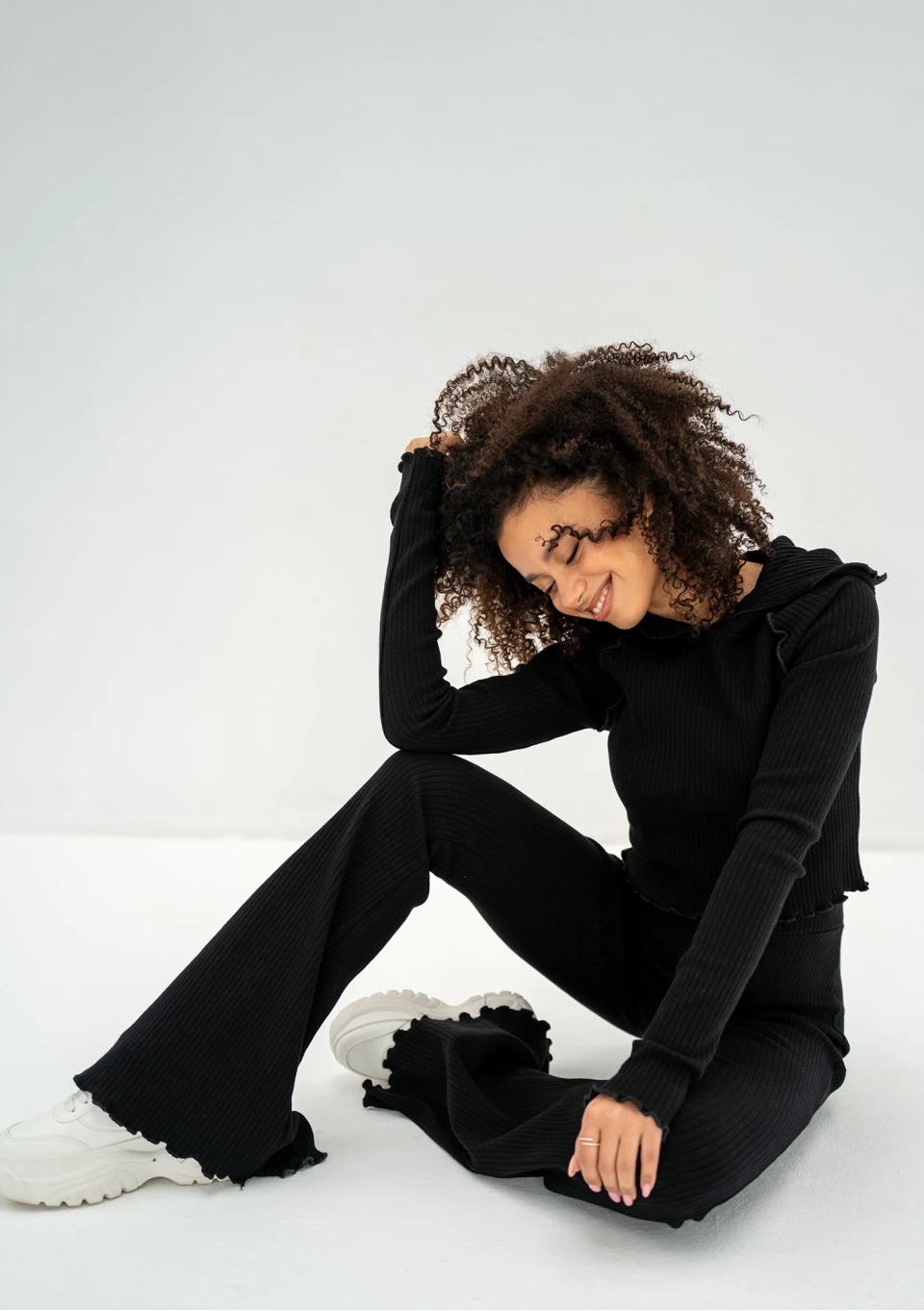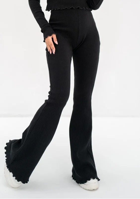 Clove - Spodnie z prążkowanej dzianiny Czarne