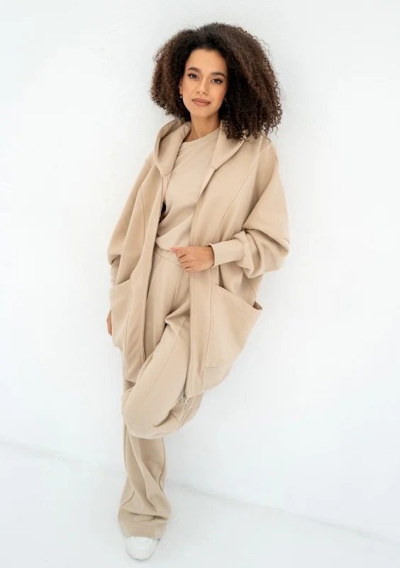 Costa - Spodnie dresowe z szeroką nogawką Sand Beige