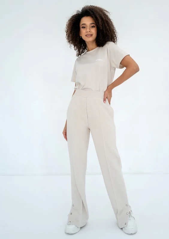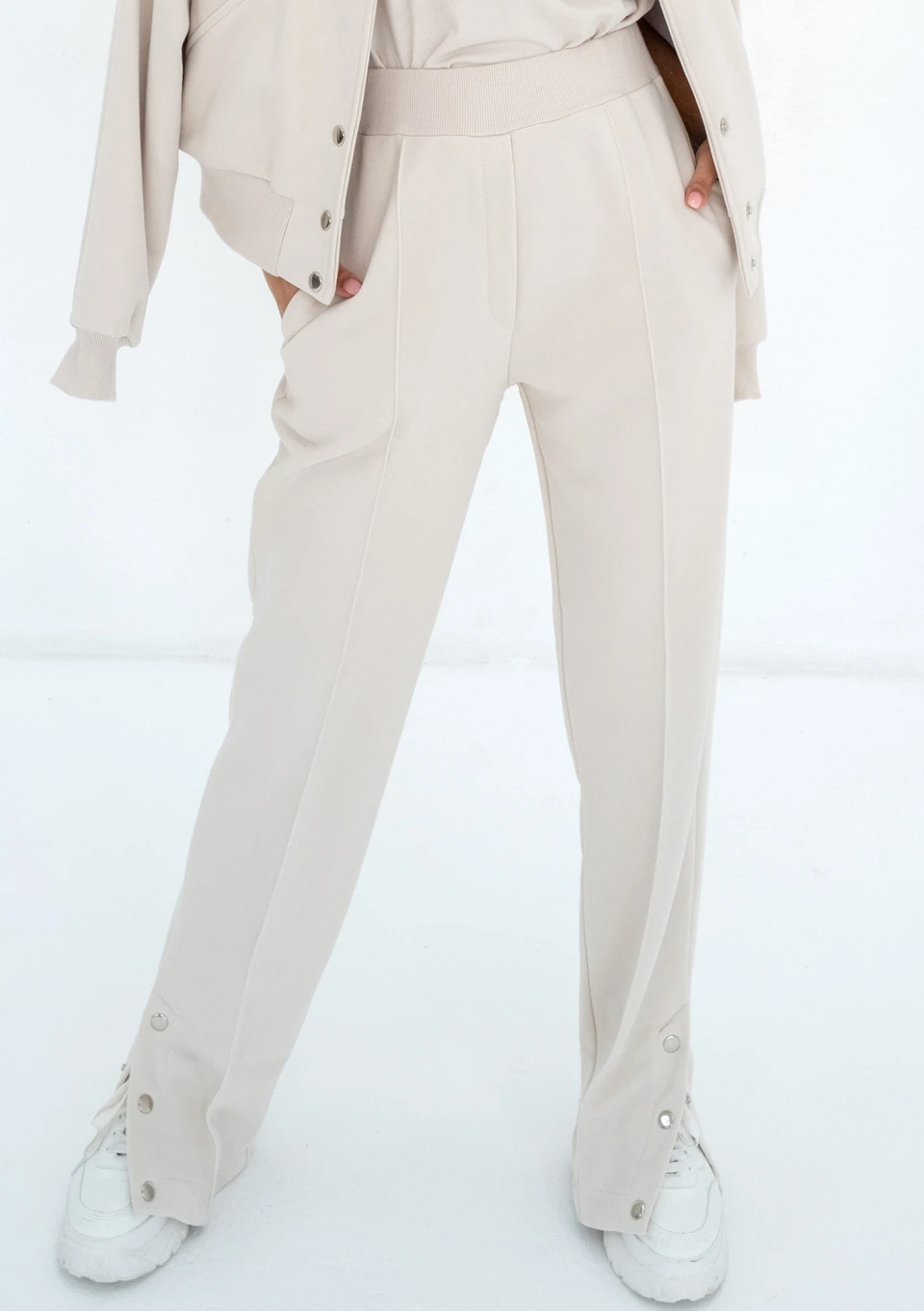 Modne spodnie damskie dresowe z ozdobnymi napami, dzięki którym poszerzysz nogawki. Wygoda i styl są tu na pierwszym miejscu.