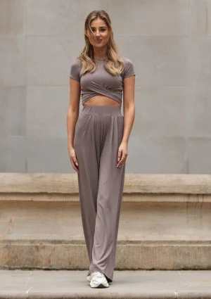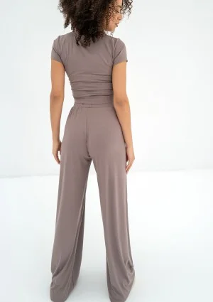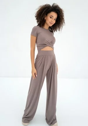 Beżowe spodnie damskie to kluczowy element w garderobie, który gwarantuje modny, smukły i elegancki wygląd zawsze i wszędzie. Ich uniwersalny fason zapewnia przewiewność dzięki szerokim i luźnym nogawkom. Dodatkowo, spodnie posiadają wygodną gumkę w pasie i są niezwykle komfortowe oraz zwiewne. Wykonane z idealnej na upały tkaniny wiskozowej, zapewniają przyjemność noszenia nawet w najgorętsze dni.