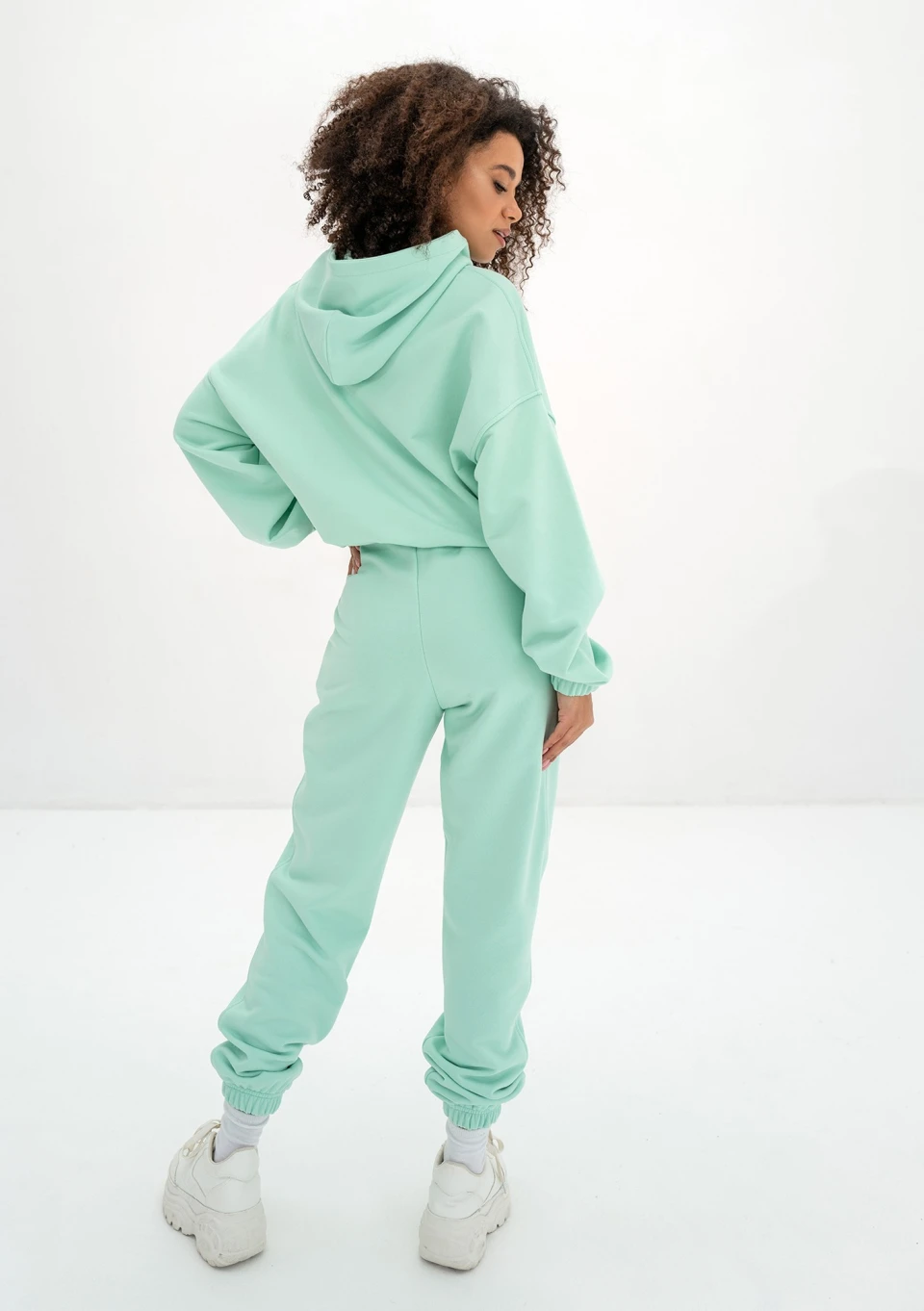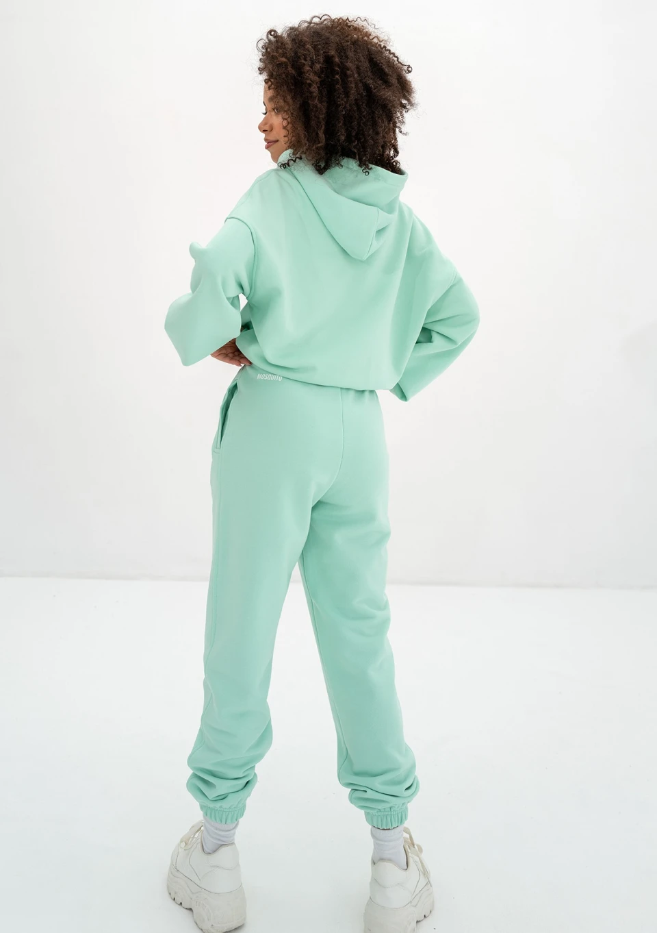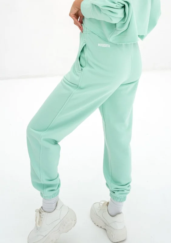 Wyjątkowe spodnie dresowe damskie zachwycą wiosenną, świeżą aurą miętowego koloru! Model Icon to dres o bardzo luźnym kroju, wykonany z miękkiej dzianiny pętelkowej.