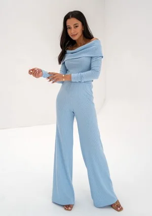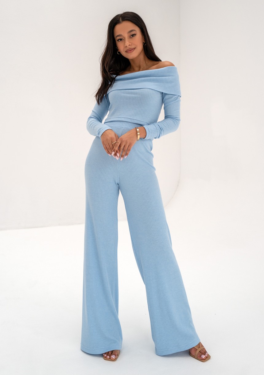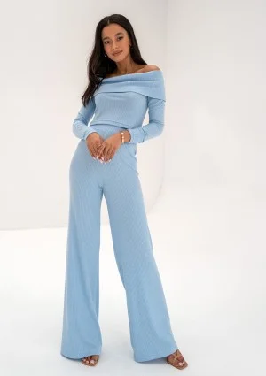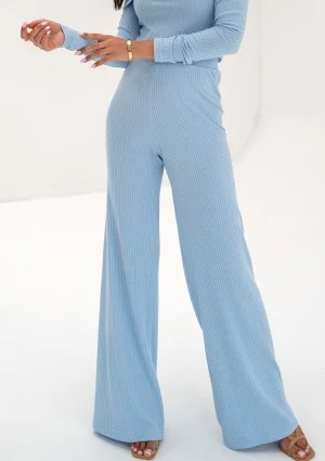 Silky - Spodnie z prążkowanej dzianiny Błękitne