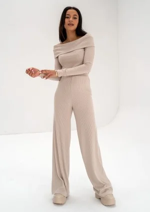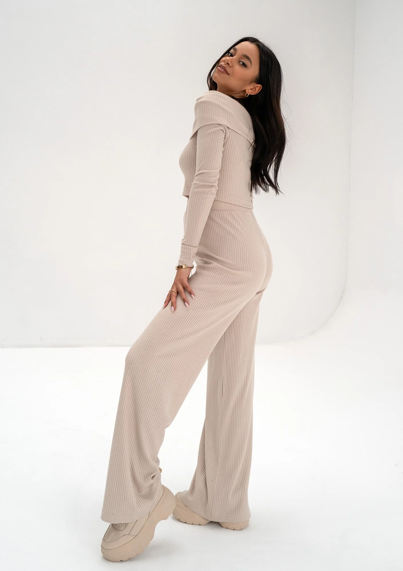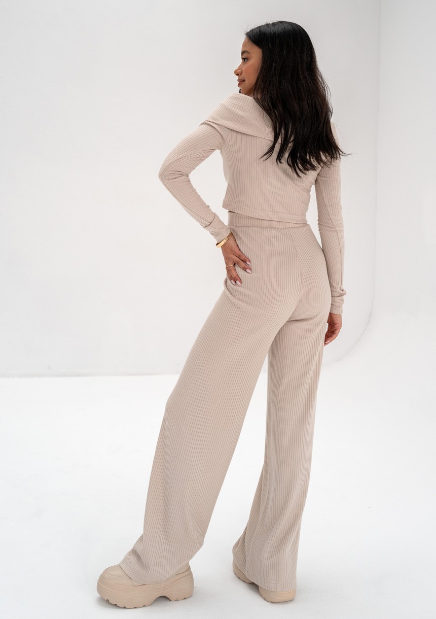 Silky - Spodnie z prążkowanej dzianiny Beżowe
