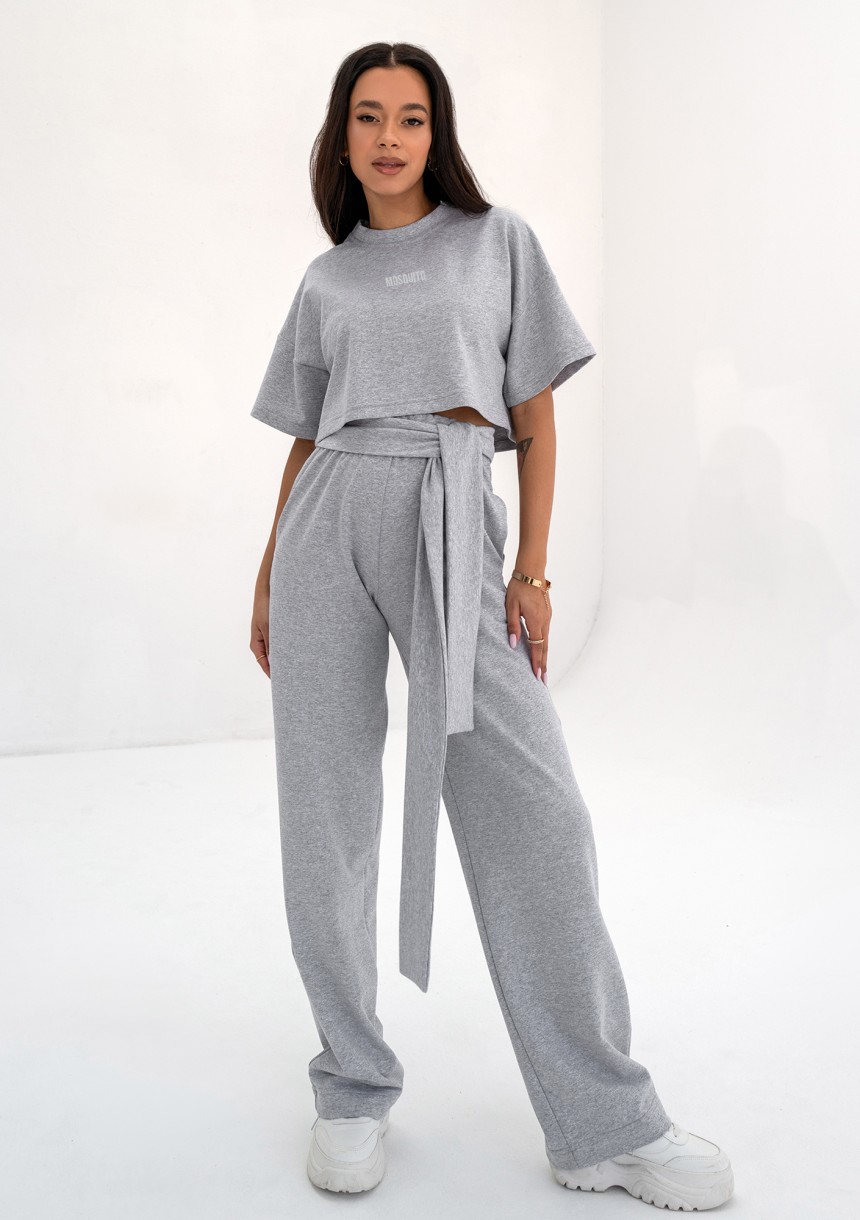 Szare spodnie damskie z bawełnianego materiału. Modne szerokie nogawki zapewnią świetny wygląd sylwetki i pełną wygodę.