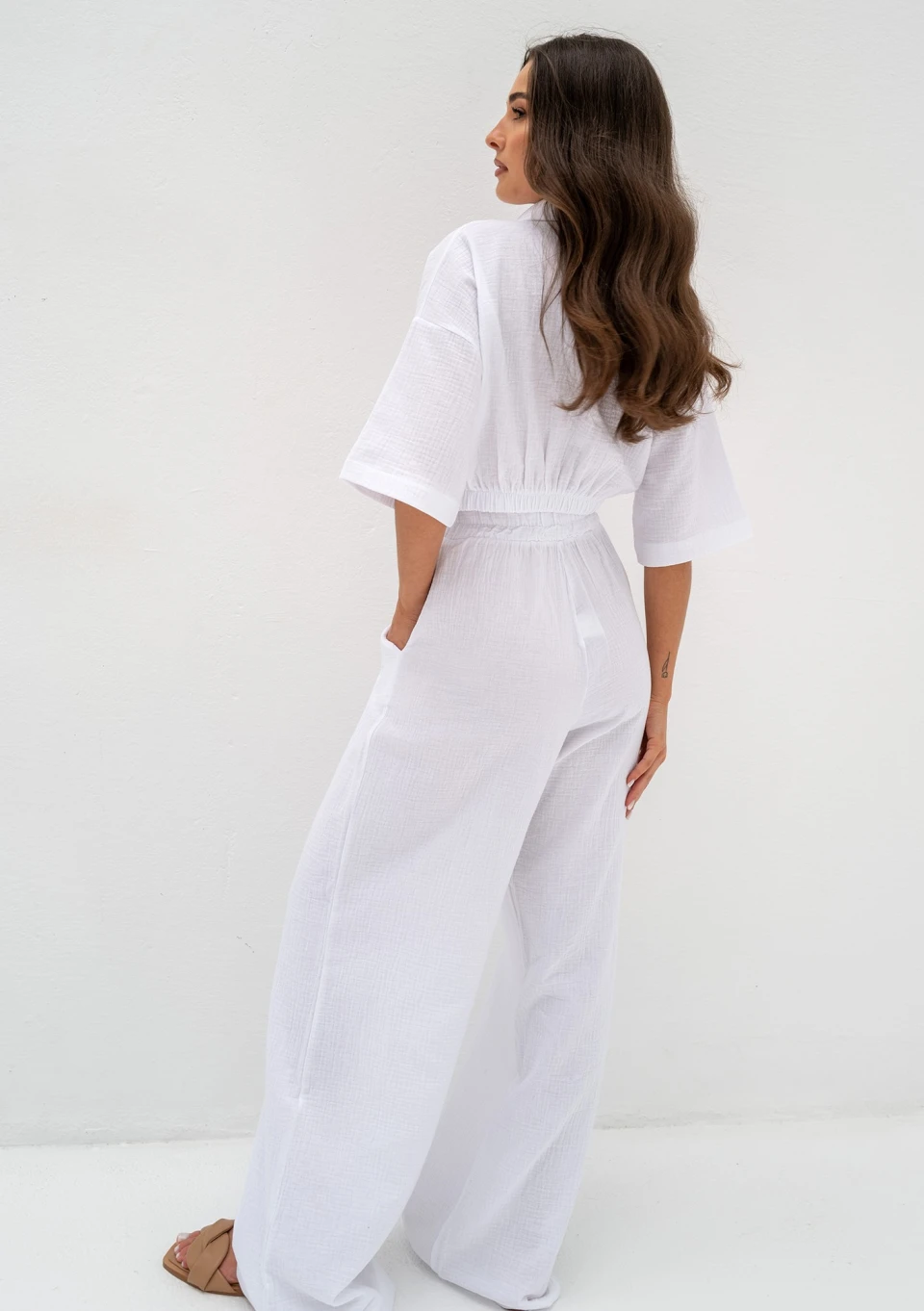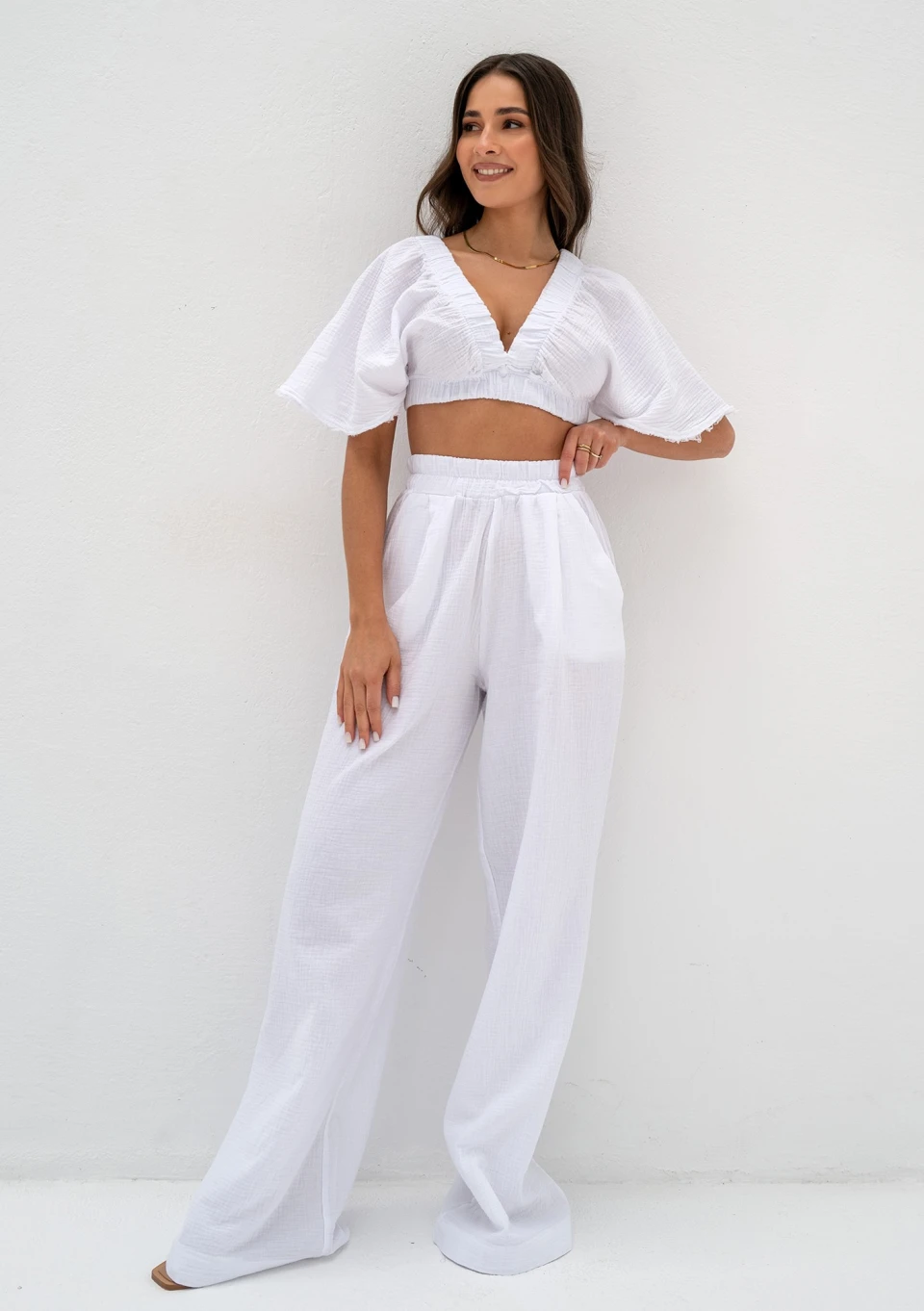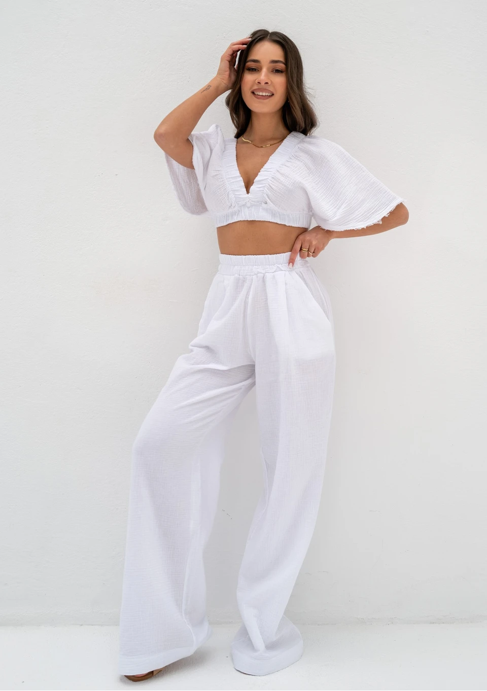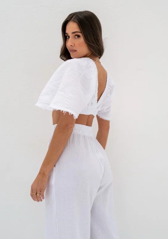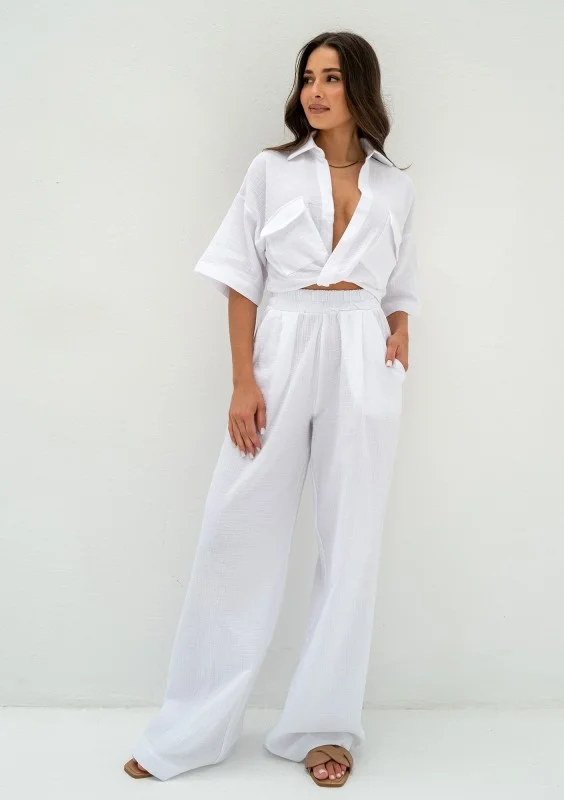 Thera - Spodnie z muślinu Białe
