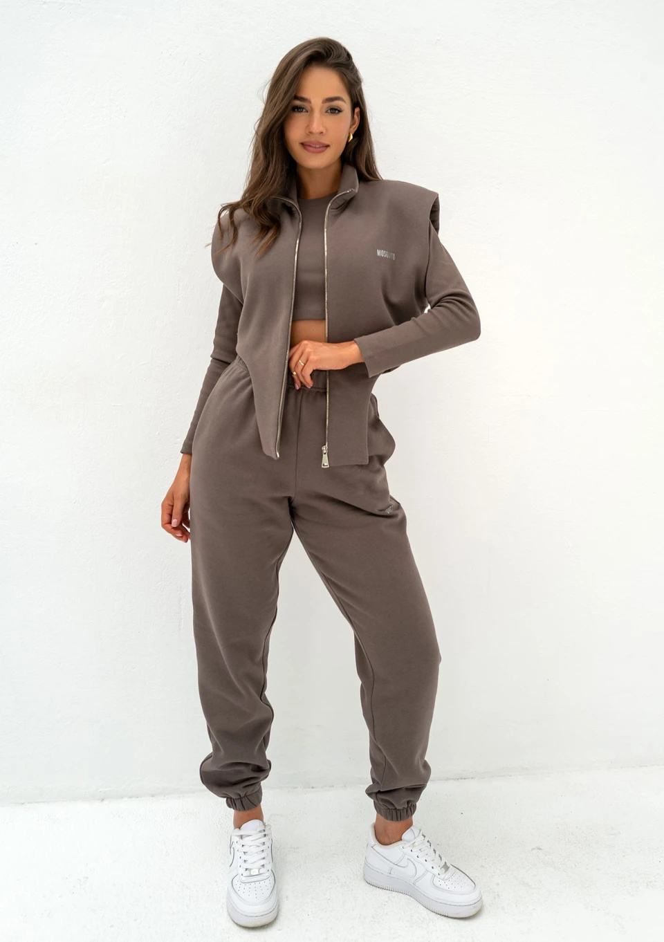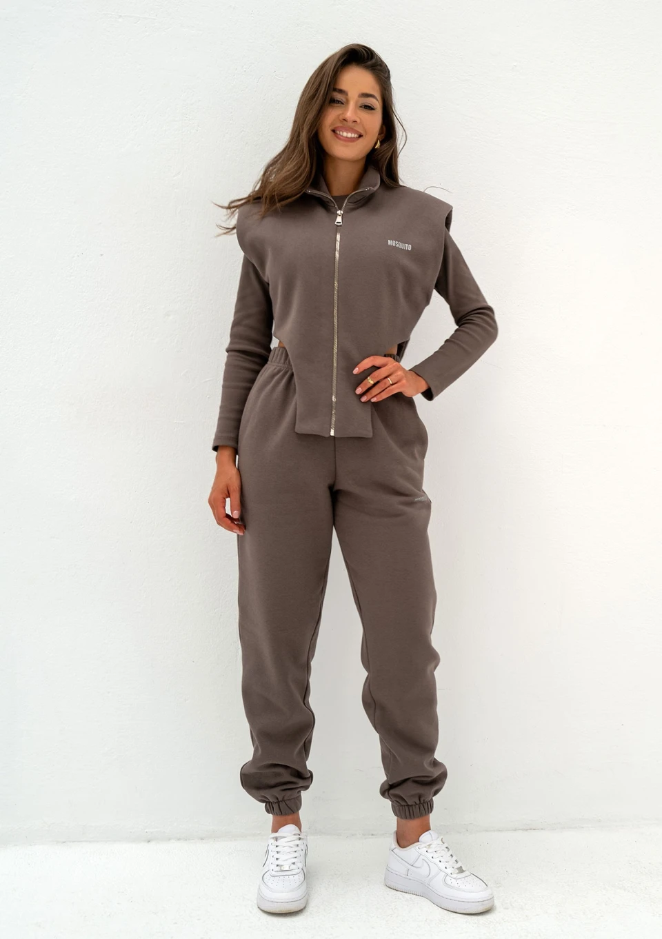 Skompletuj wygodny komplet dresowy damski w pięknym i uniwersalnym kolorze brązowym, a jesienią i zimą będziesz w posiadaniu najmodniejszej stylizacji! Luźny dres damski to idealna, awaryjna kombinacja na szybkie wyjście. Spodnie dresowe damskie o fasonie Kolee są podobne do naszego bestsellerowego modelu Pure. Różnią się jednak tym, że są luźniejsze i bardziej oversizowe.