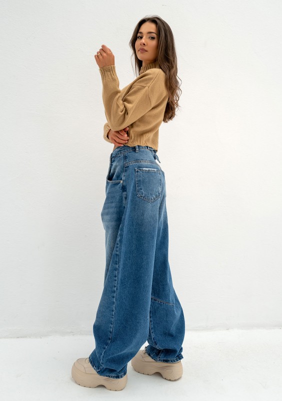 Jeansy damskie Joyo to aktualnie najgorętszy trend. Maksymalnie oversizowe, niezwykle dodają stylu. Wykonane z niebieskiego dżinsu. Z tyłu regulacja pasa.