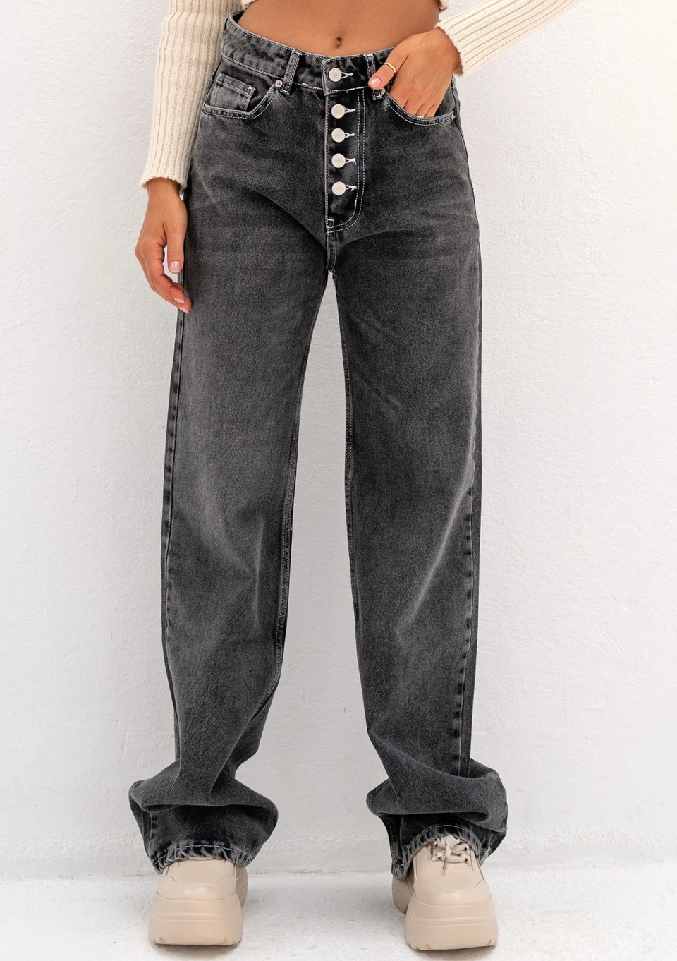 Odkryj modne jeansy damskie Mosquito o wygodnym kroju z prostymi nogawkami. Design spodni podkreśla rozporek z guzikami.