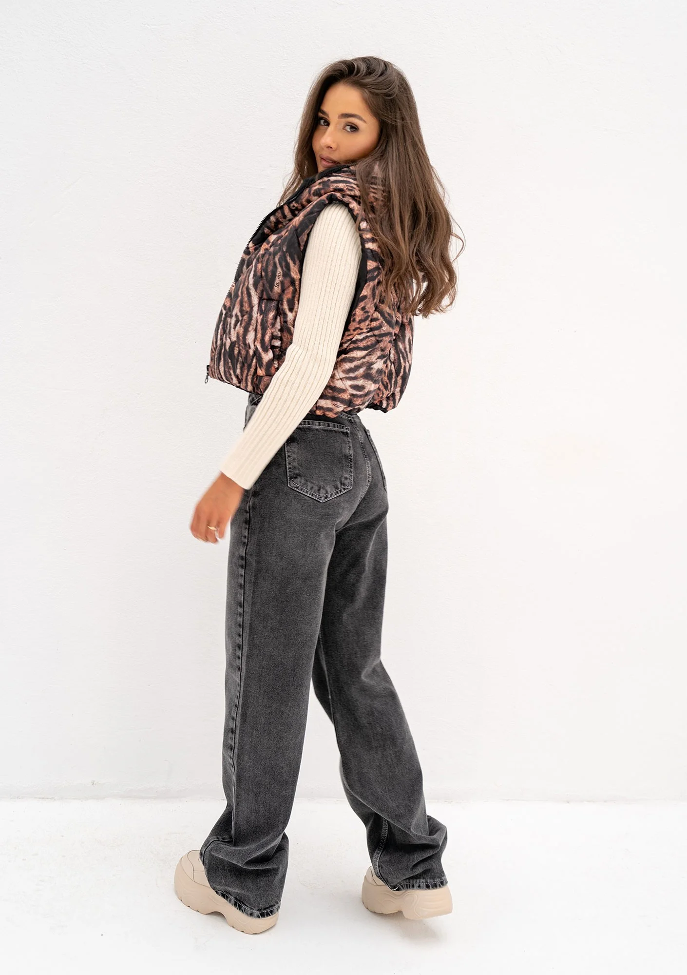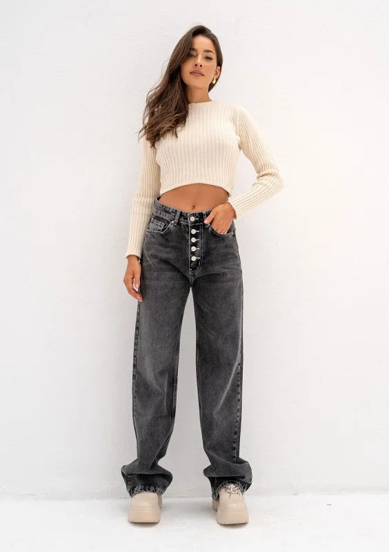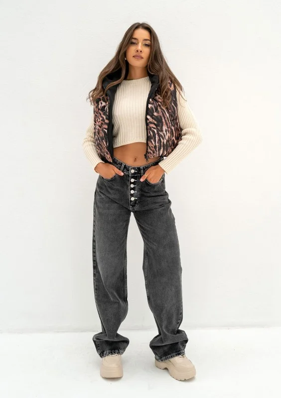 Rozporek zapinany na niekryte guziki sprawia, że jeansy świetnie wyglądają. Spodnie jeansowe Cooper wpisują się w aktualne trendy – jeśli kochasz denim, noś go w formie oversize lub z szeroką nogawką. Z korzyścią dla naszych sylwetek do kanonu powrócił wysoki stan sięgający talii. I to właśnie obwodem talii kieruj się przy wyborze rozmiaru. Podana długość spodni dotyczy zewnętrznej linii, łącznie nogawki z pasem. Te jeansy sprawdzą się także u wyższych kobiet.