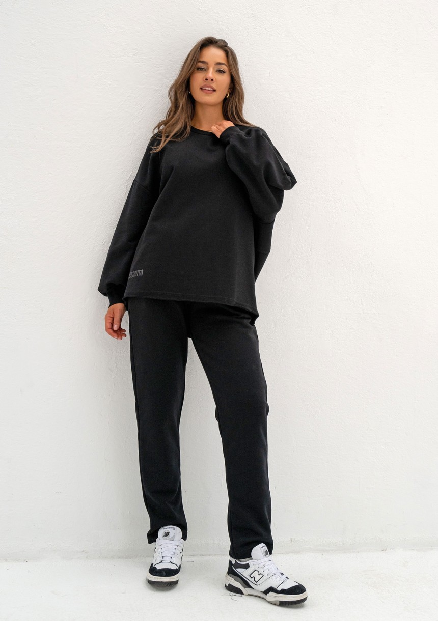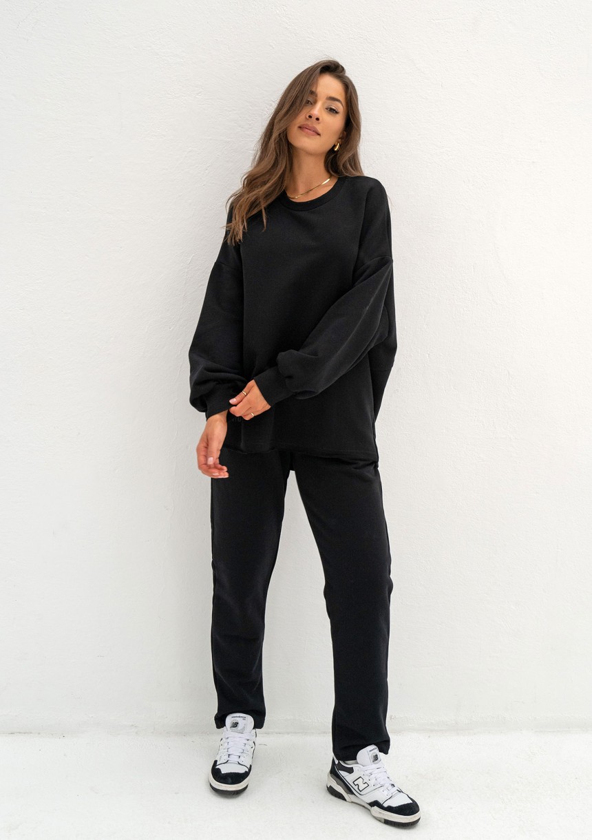 Klasyczne spodnie dresowe w czarnym kolorze. Materiałem wykonania jest miękka dzianina pętelkowa, bez puszku. Wyposażone w kieszenie.