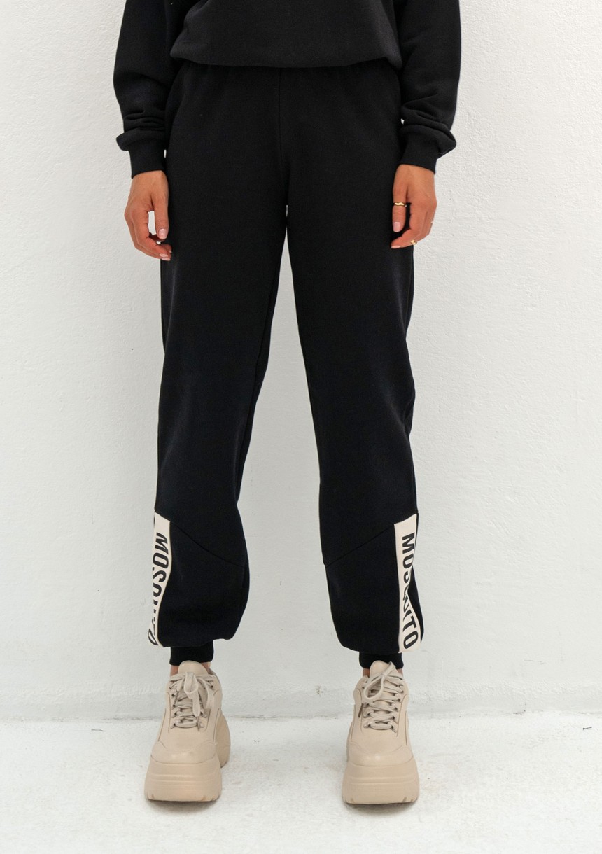 Czarne spodnie dresowe dla miłośniczek wyrazistego designu. Urozmaicone stylowymi wstawkami z logiem marki.