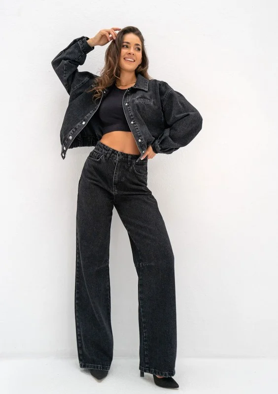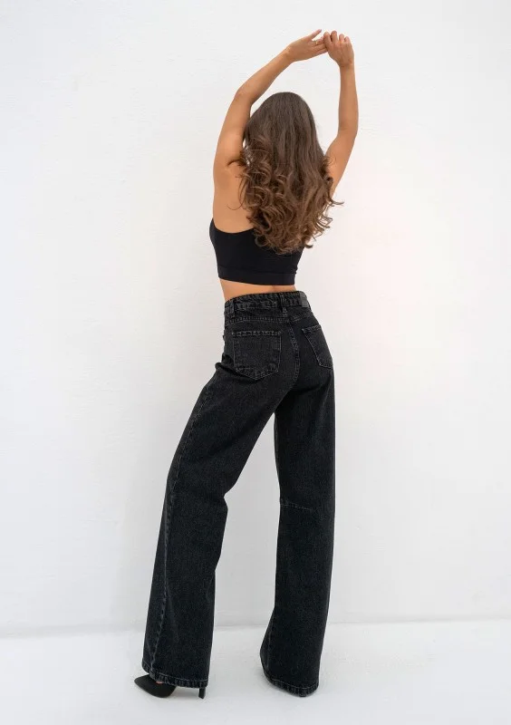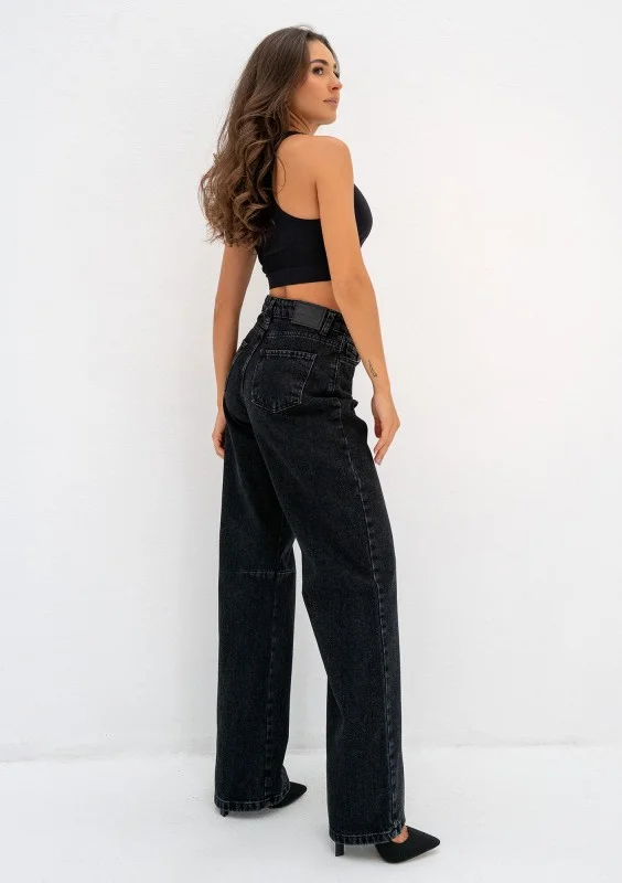 Rock - Jeansy damskie palazzo Black