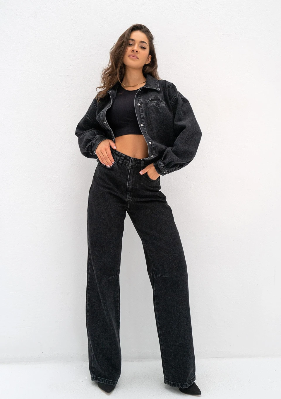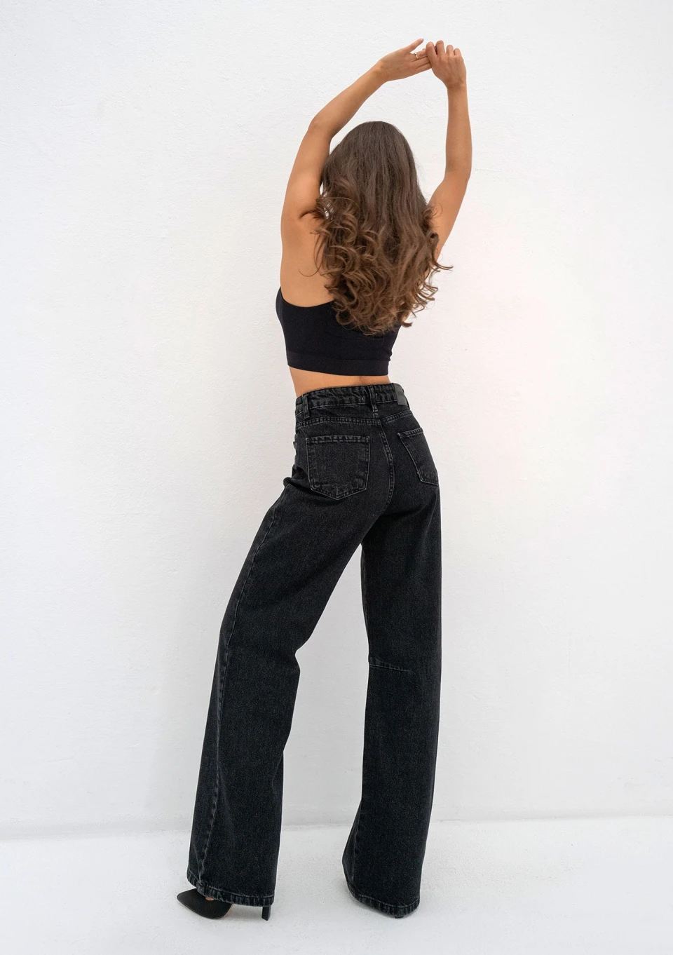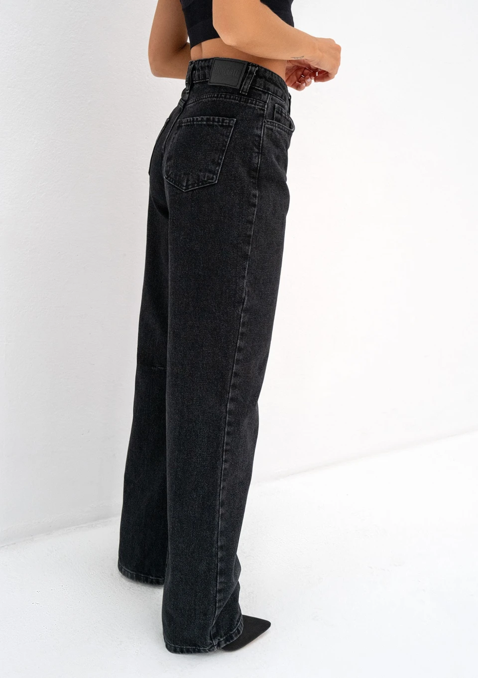 Czarne jeansy damskie z delikatnie poszerzonym krojem nogawek i wyższym stanem. Rock to jeden z naszych najbardziej wszechstronnych fasonów.