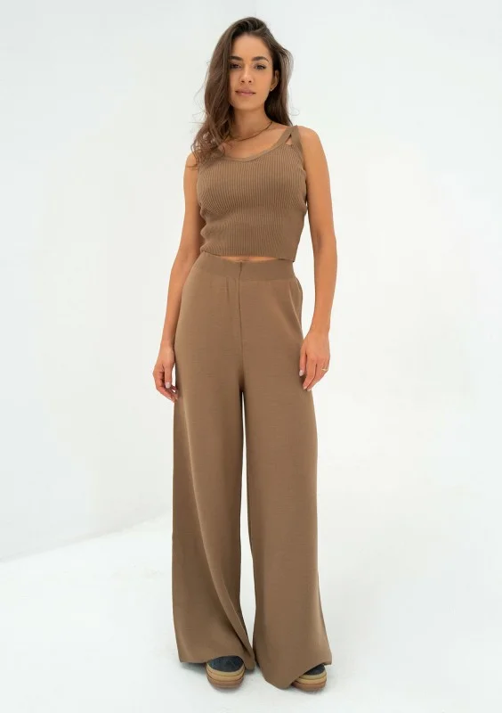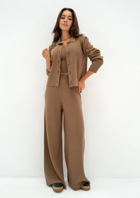 Mebo - Spodnie z dzianiny Camel