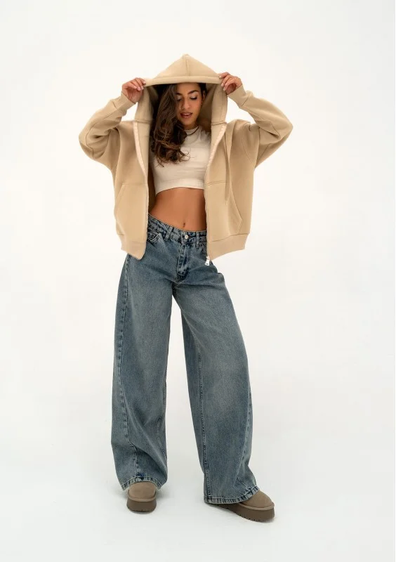 Odkryj nowe możliwości stylizacyjne, jakie zapewniają modne spodnie jeansowe damskie z szeroką nogawką! Trendy uliczne całkowicie pochłonęły formy oversize sprawiając, że nosimy je od góry do dołu. Te spodnie możesz nosić do wygodnych, przyjemnie ciepłych bluz i luźnych kardiganów. Ubiór złożony z oversizowych elementów możesz bilansować dopasowanymi topami. W naszej ofercie znajdziesz mnóstwo bluzek i crop topów, także dzianinowych, z którymi stworzysz doskonałe połączenia na każdą okazję.