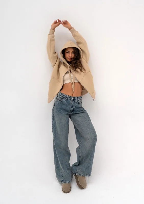Szerokie spodnie jeansowe damskie w jasnym odcieniu. Są aktualnie najmodniejszym fasonem i świetnie wyglądają na każdej sylwetce!