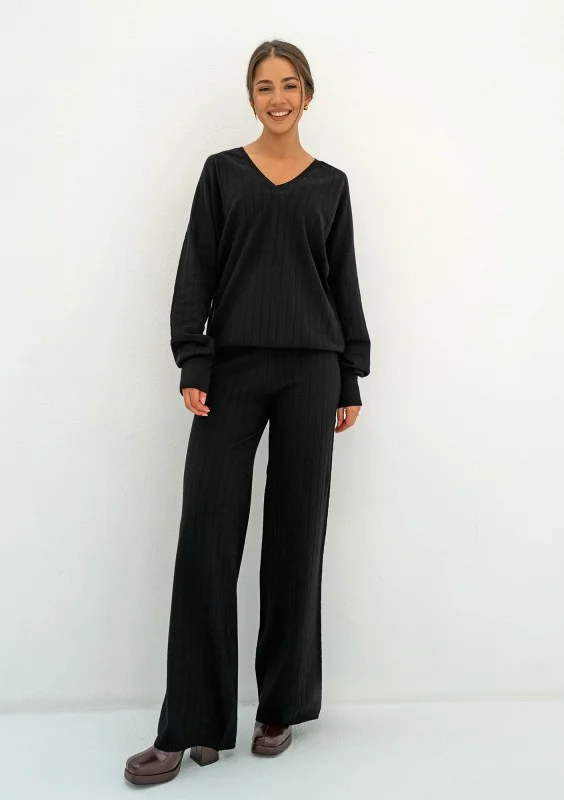 Akari - Dzianinowe spodnie z ażurowym lampasem Black