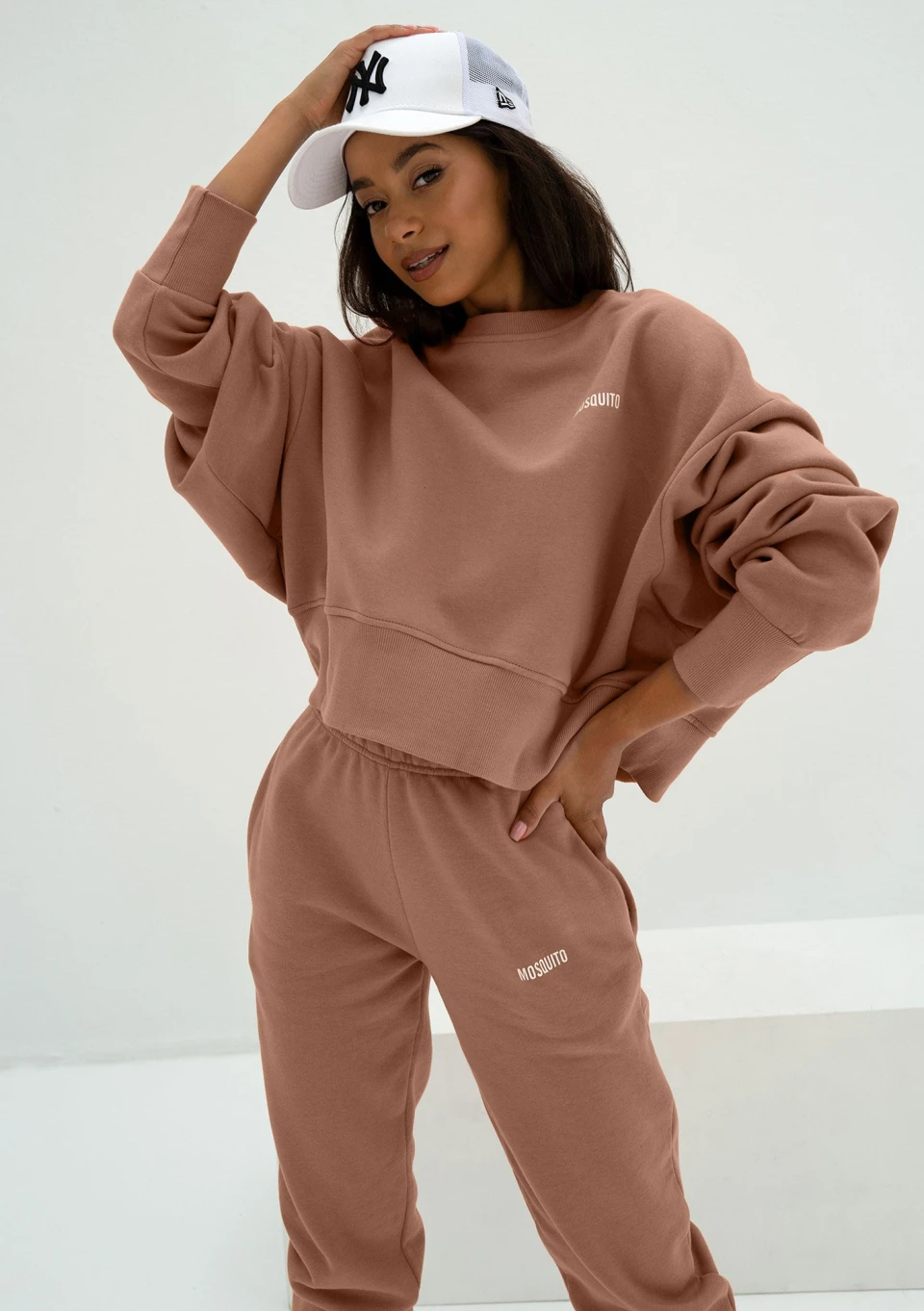 Spodnie dresowe w najmodniejszym odcieniu Mocha Mousse. Idealne na ten sezon, wykonane z miękkiej dzianiny bawełnianej.