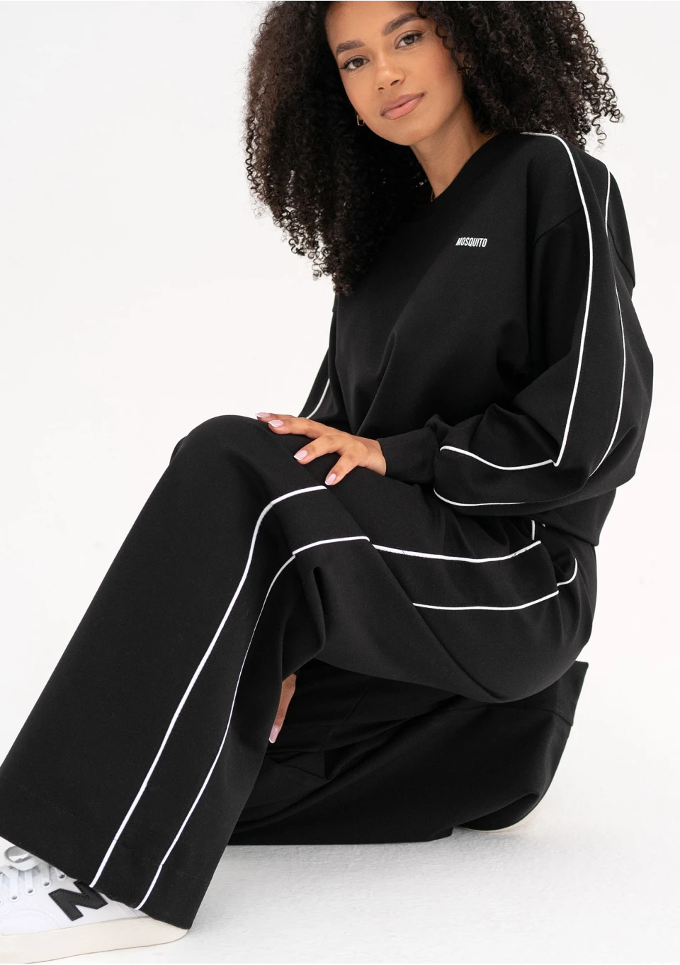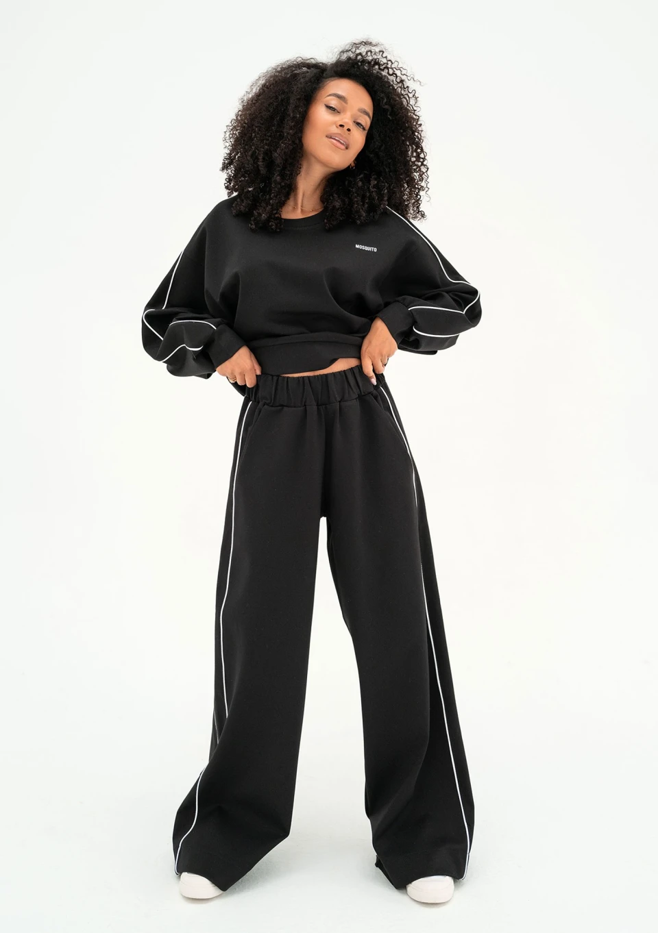 Postaw na stylowy i efektowny fason oversize! Czarne spodnie dresowe Cody zostały wykończone modną lamówką.