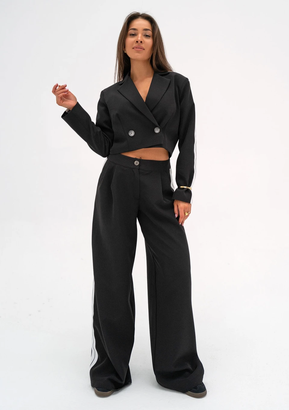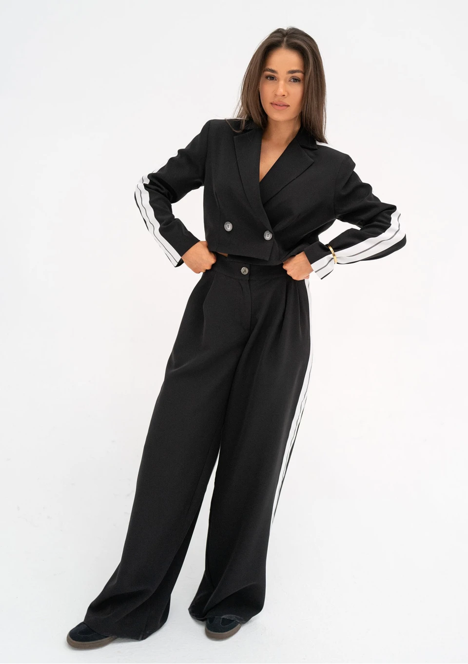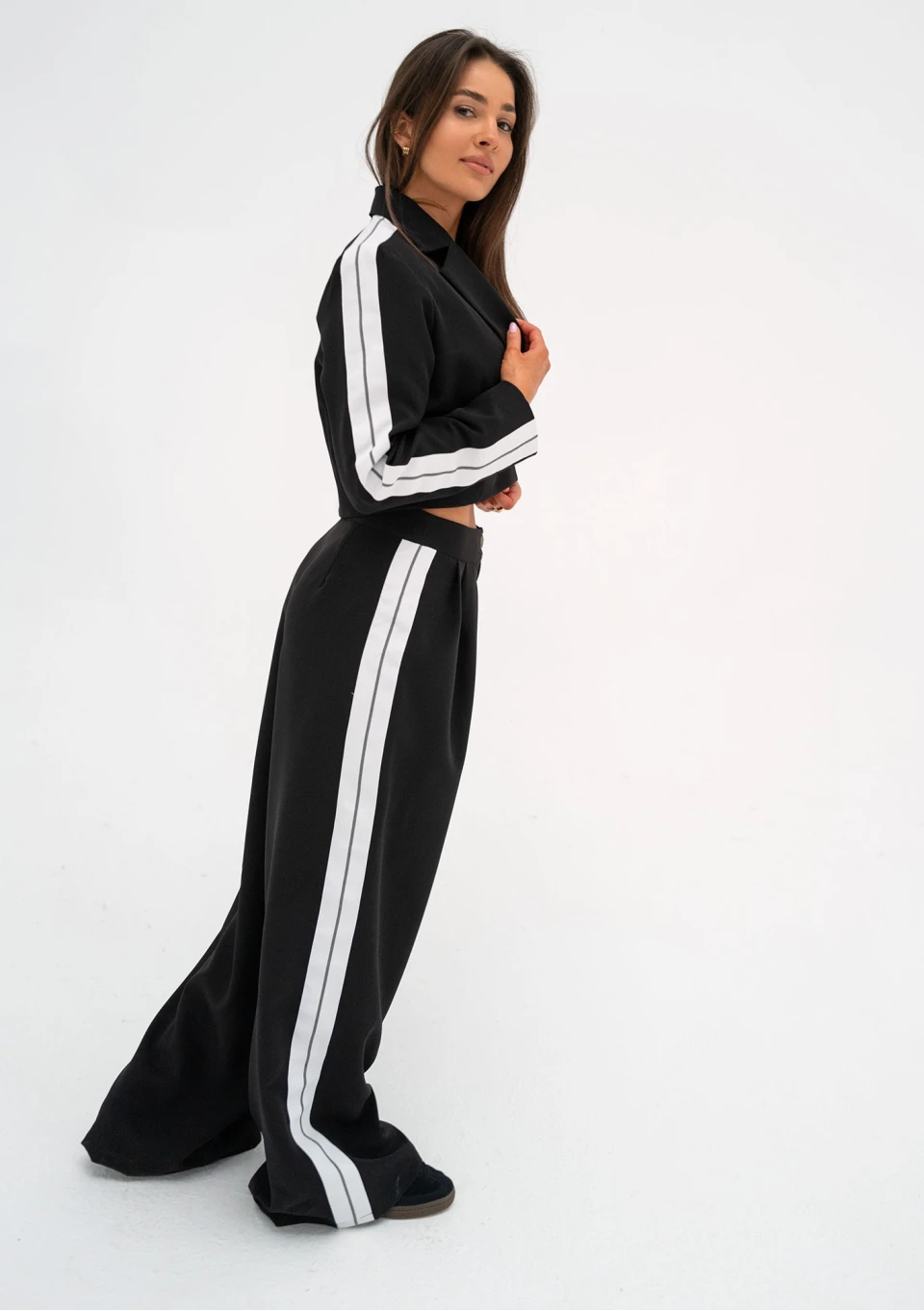 Cora - Szerokie spodnie z lampasami Black