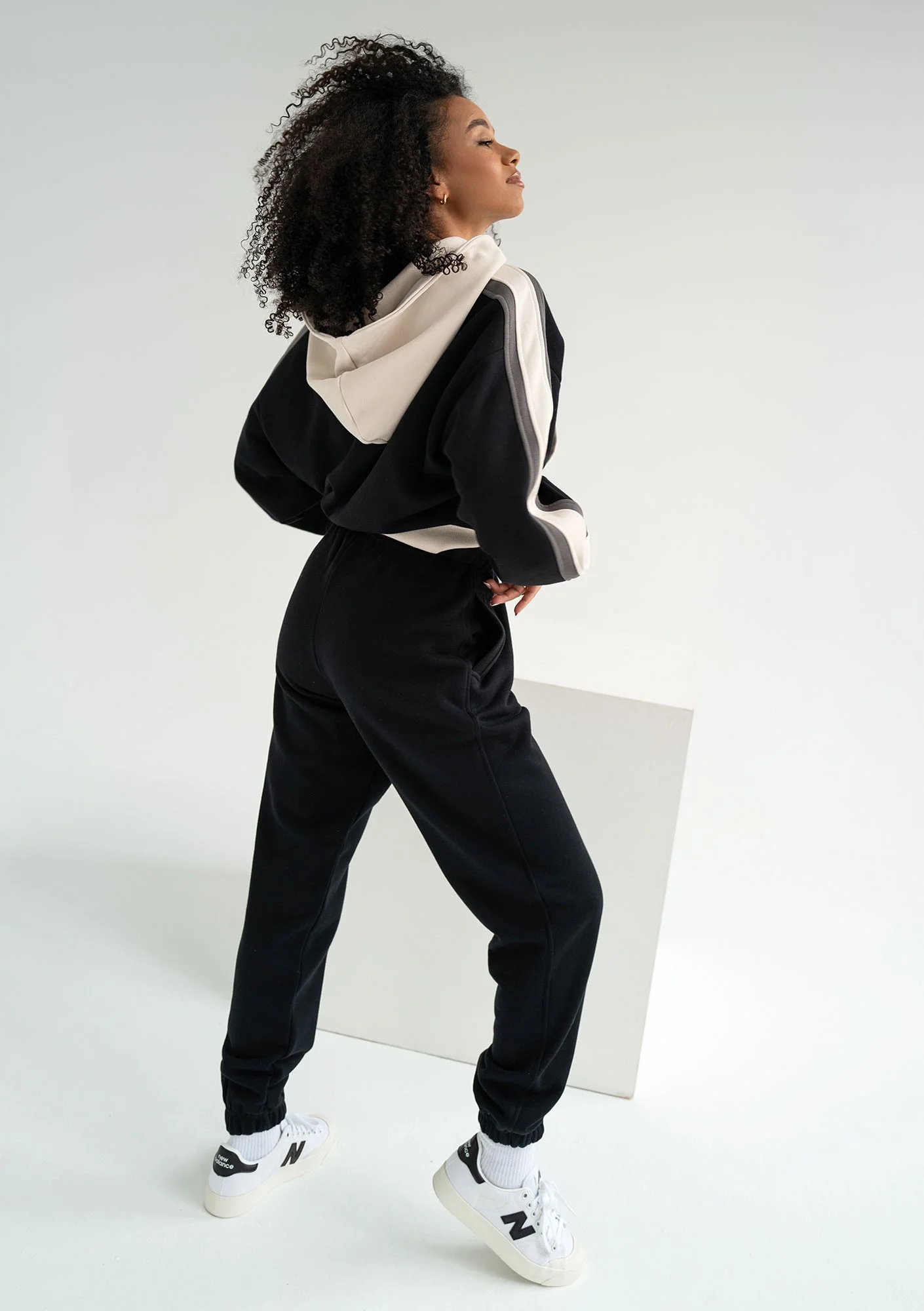 Czarne spodnie dresowe Fame wyróżniają się białymi troczkami w pasie, które dodają uroku i stylowo współgrają z dedykowaną bluzą, którą również możesz kupić w tym sezonie. Nasze dresy damskie z dzianiny pętelkowej mają przyjemnie miękką fakturę ze specjalnym wykończeniem, by pętelka nie stawała się szorstka wraz z biegiem czasu. Materiał jest lekki i przewiewny, doskonale nadaje się do użytku w cieplejszych porach.