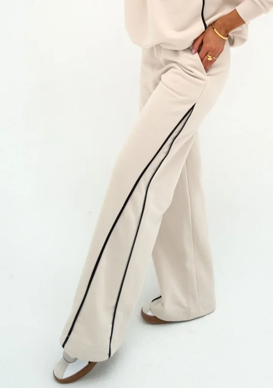 Costa - Spodnie dresowe z szeroką nogawką Sand Beige