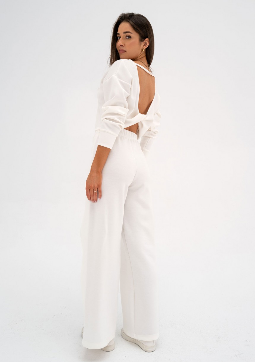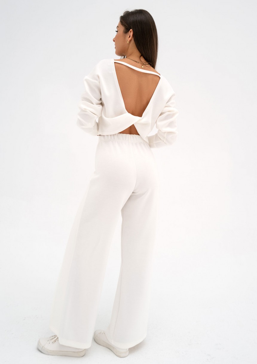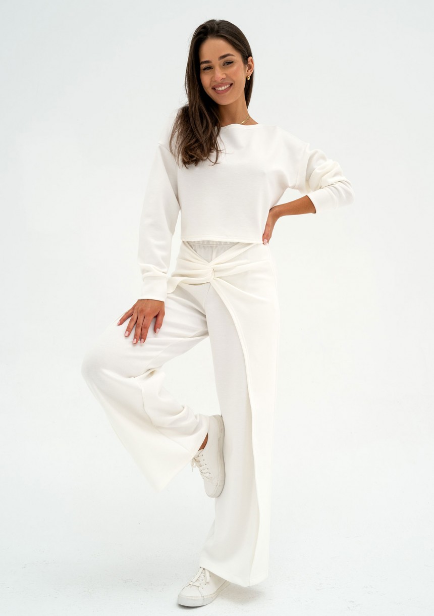 Wyjątkowe spodnie damskie z draperią. Eleganckie i wygodne, o nietuzinkowym fasonie! Wykonane z komfortowej tkaniny z wiskozą, w odcieniu ecru.