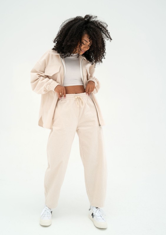 Boyfriendy, z ich luźnym, niezobowiązującym krojem, to synonim komfortu i swobody. Wiosną, kiedy stawiamy na wygodę i naturalność, ten fason idealnie się wpisuje w ten trend. Nie krępują ruchów i pozwalają na tworzenie wielu warstwowych stylizacji. Wybierz model wykonany z modnego sztruksu, w delikatnym, a więc idealnym na słoneczne, wiosenne dni kolorze ecru. Spodnie damskie Cord pasują do dedykowanej kurtki oversize o tej samej nazwie fasonu.