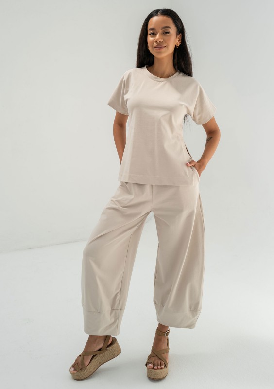 Bali - Spodnie z bawełny baloon Oat Beige