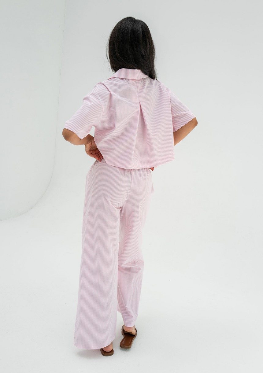 Przygotuj się na lato w absolutnym stylu z naszymi przewiewnymi, bawełnianymi spodniami, które wyróżniają się uroczym, prążkowanym wzorem. Te lekkie i swobodne spodnie to kwintesencja letniego komfortu i elegancji, idealne, by czuć się lekko i wyglądać lekko, subtelnie i świeżo. Ich luźny krój i bardzo cienka struktura tkaniny zapewniają doskonałą cyrkulację powietrza, co czyni je idealnym wyborem na upalne dni. Wyobraź sobie, jak swobodnie czujesz się w nich podczas spacerów po plaży, rozgrzanym mieście czy spotkań ze znajomymi w kawiarnianych ogródkach. Te letnie spodnie damskie to nie tylko komfort, ale i wszechstronność. Z łatwością zestawisz je z ulubionym topem, koszulką czy elegancką bluzką, tworząc stylizacje na każdą okazję. Postaw na naszą propozycję spójnej stylizacji i kup je wraz z krótką koszulą z tego samego materiału.
