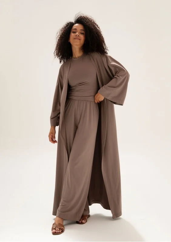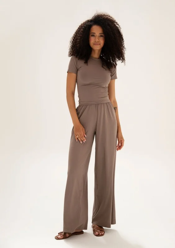 Misti - Szerokie spodnie dzianinowe Brązowe