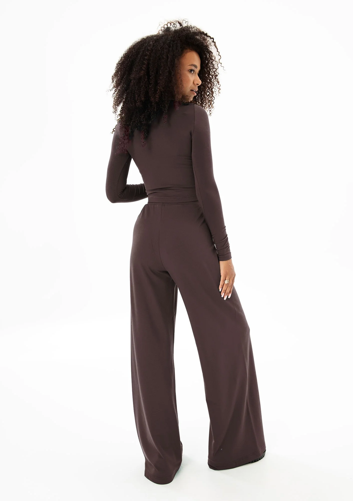 Nova - Szerokie spodnie z wiskozy z kontrafałdą Brązowe