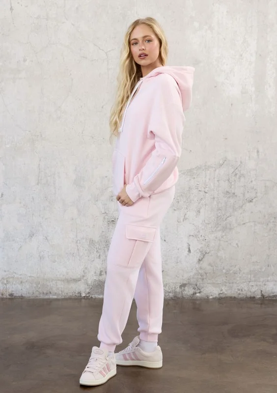 Funkcjonalne i stylowe spodnie dresowe cargo, wykonane w przepięknym, pastelowym odcieniu różu. Idealne na każdą wyprawę!