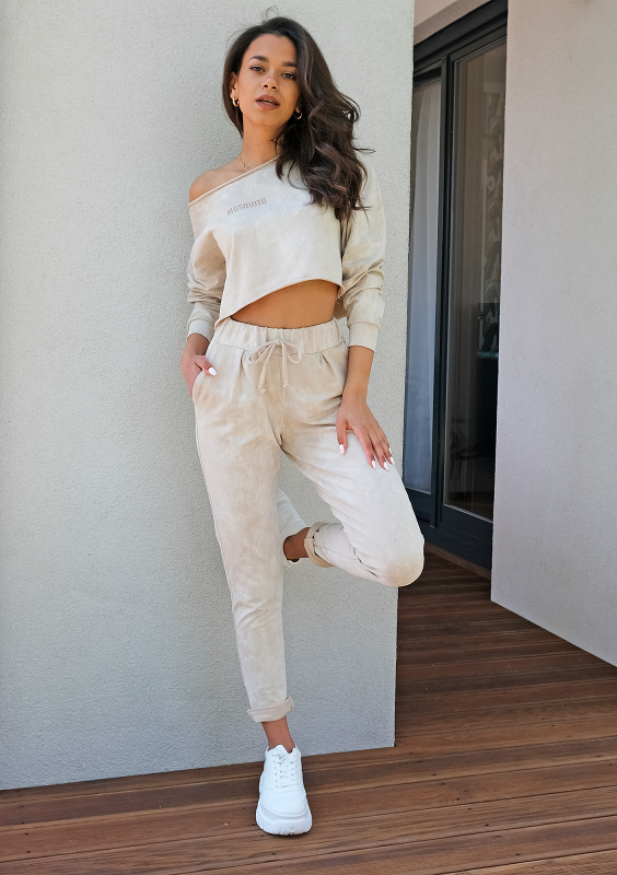 Spodnie z efektem sprania Beżowe ILM