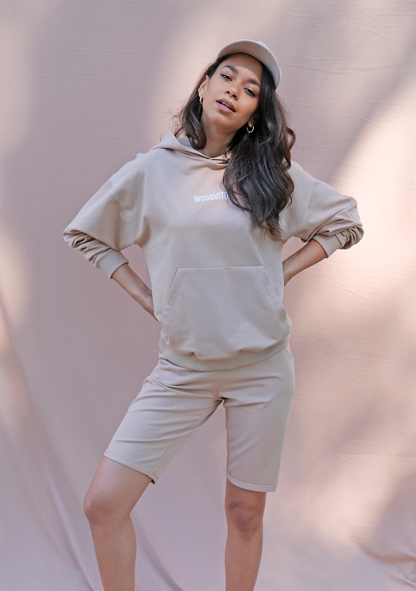 Poza wysoką jakością wykonania, dużym atutem prezentowanych spodenek damskich jest również ich uniwersalna kolorystka. Tkanina, z której uszyto produkt to materiał jednolity i łatwy w zestawieniu z innymi kolorami. Dzięki jego gładkości górę stylizacji może stanowić bluzka lub koszulka o dowolnych wzorach i kolorach. Krótkie spodenki damskie nie posiadają żadnych dodatkowych ozdób poza funkcjonalnymi kieszonkami bocznymi i wykończeniem na subtelną zakładkę. Ich zaletą jest także szeroka gumka wszyta w pasie, dzięki której ubranie dobrze leży i nie zsuwa się z bioder nawet podczas uprawiania sportu. Beżowe spodenki z bawełny będą idealnym wyborem na każdy letni dzień - zaprezentują się dobrze zarówno podczas spaceru w parku, jak i na zakupach w mieście.