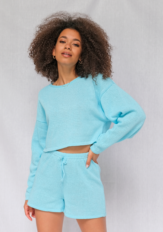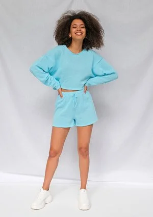 Szorty o splocie dzianym z bawełny Turkusowe ILM A54