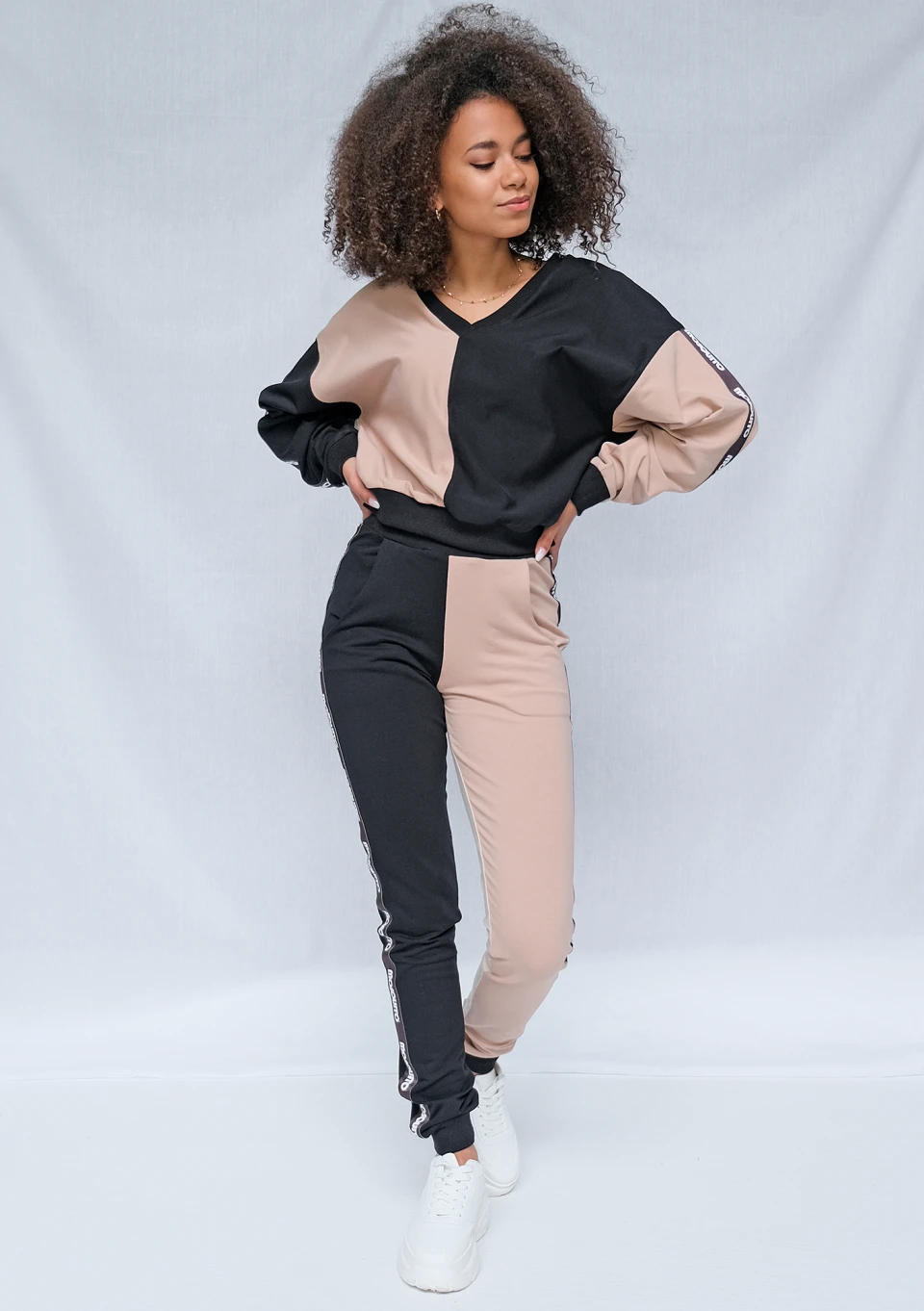 Spodnie dresowe Latte z lampasami black ILM