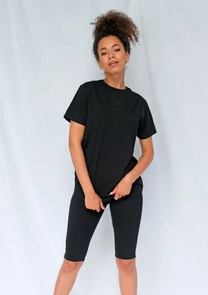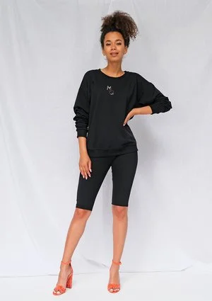 Ten model na pewno przypadnie do gustu każdej pani. Przede wszystkim te legginsy mają doskonałą długość, ponieważ sięgają prawie do kolana. Posiadają wysoki stan, który sprawia, że nie przesuwają się i cały czas pozostają na swoim miejscu. Czarny, uniwersalny kolor sprawia, że można zestawić je na wiele różnych sposobów i zawsze będą miały modny charakter. Są gładkie, zarówno z przodu, jak i z tyłu, co sprawia, że dopasowują się do danego typu figury. Wykonane są również z wysokiej jakości materiału. Legginsy damskie w swoim składzie mają 95% bawełny oraz 5% laycry. Dzięki temu są przyjemne w dotyku i miękkie, ale jednocześnie rozciągliwe i dopasowujące się. Na naszej stronie dostępne są w czterech standardowych rozmiarach, czyli XS, S, M oraz L. Sprawia to, że każda kobieta znajdzie model dopasowany do jej typu sylwetki. Polecamy jednak zakup swojego standardowego rozmiaru, ponieważ łatwo dopasowują się do ciała.