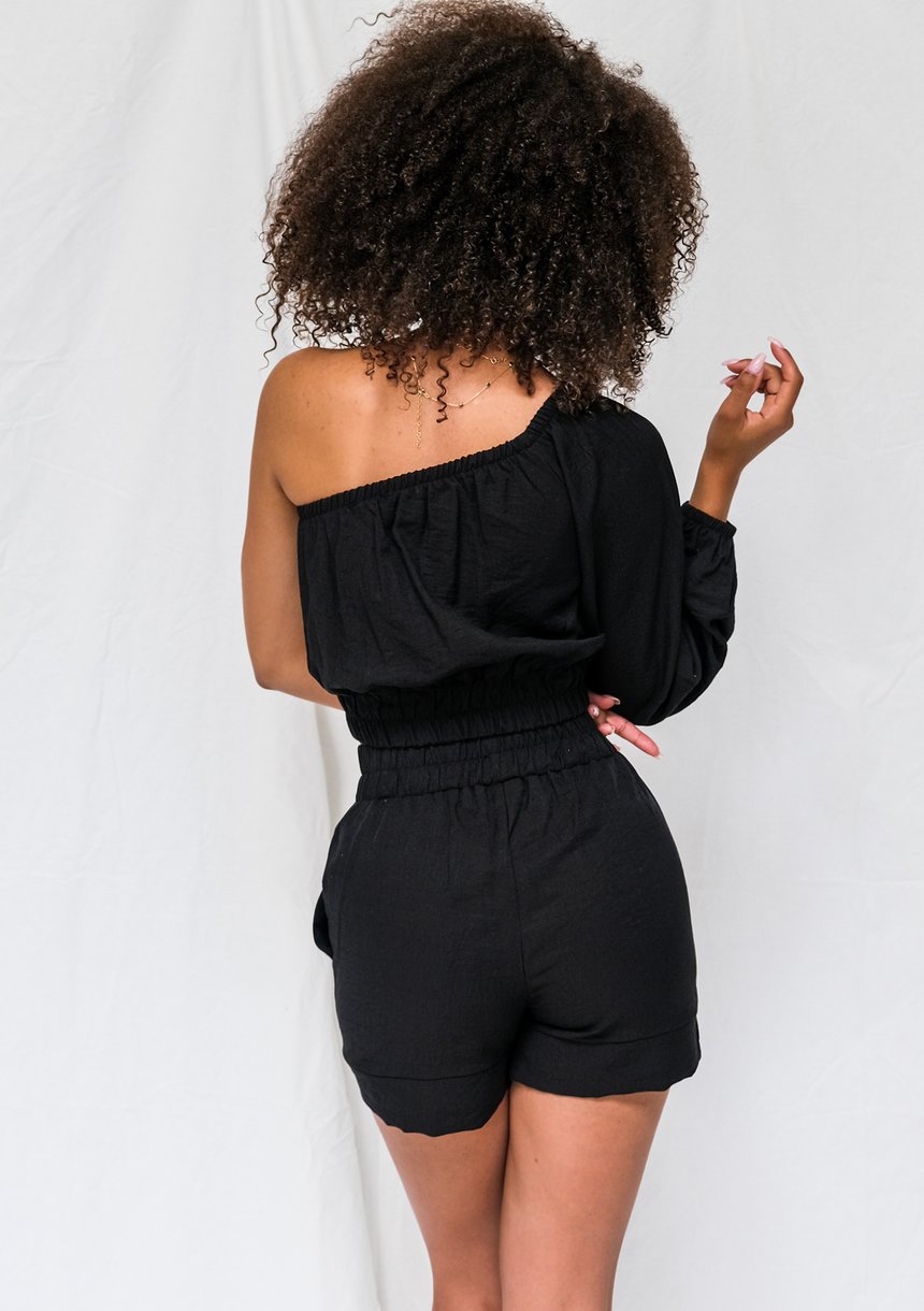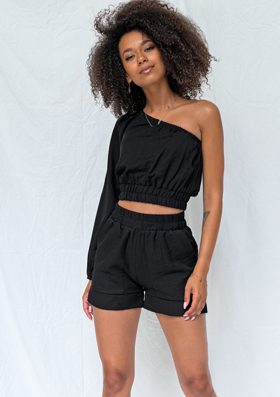 Krótkie spodenki z kreszowanej tkaniny czarne
