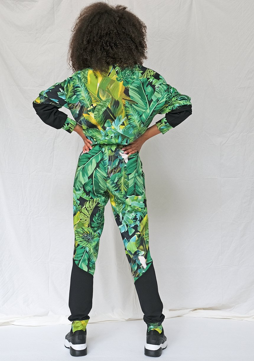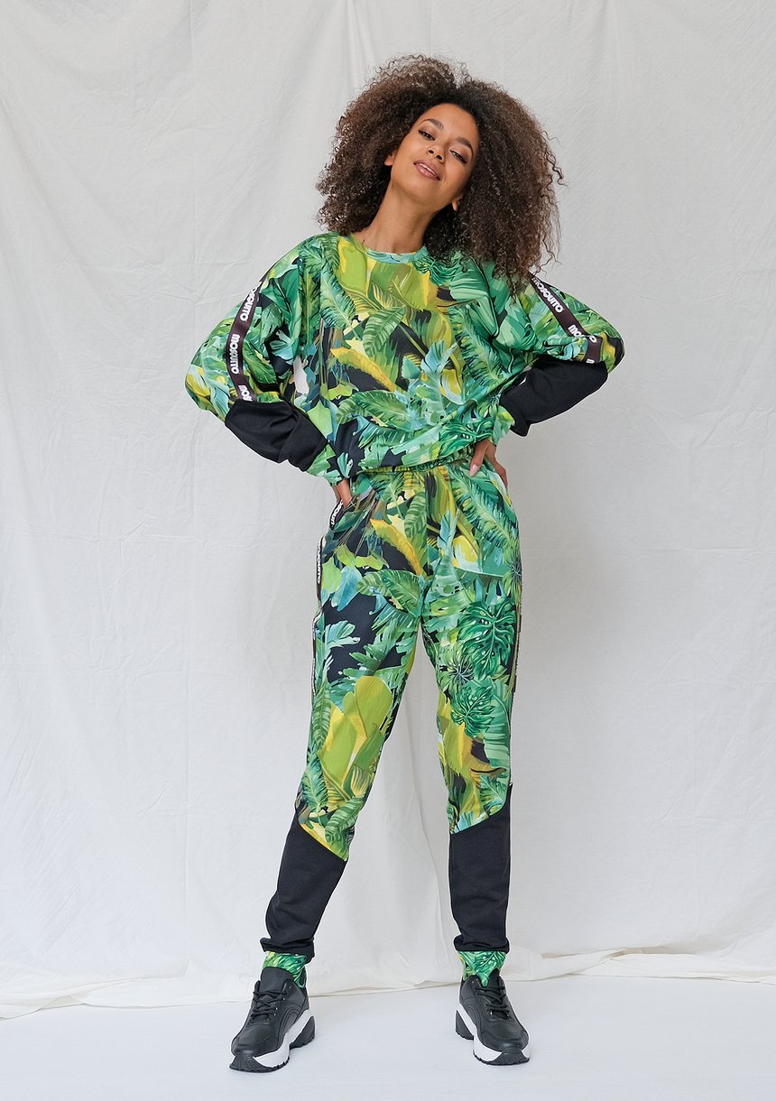 Spodnie z lampasem exotic garden print