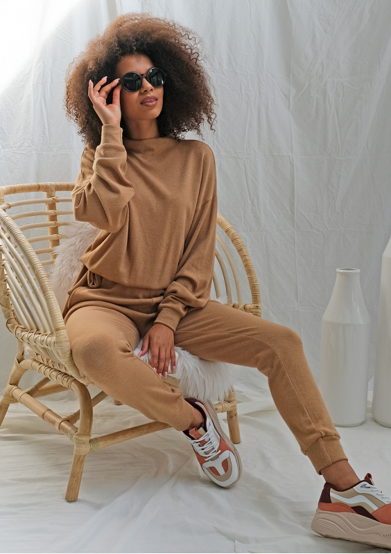 Miodowe spodnie z dzianiny sweterkowej ILM