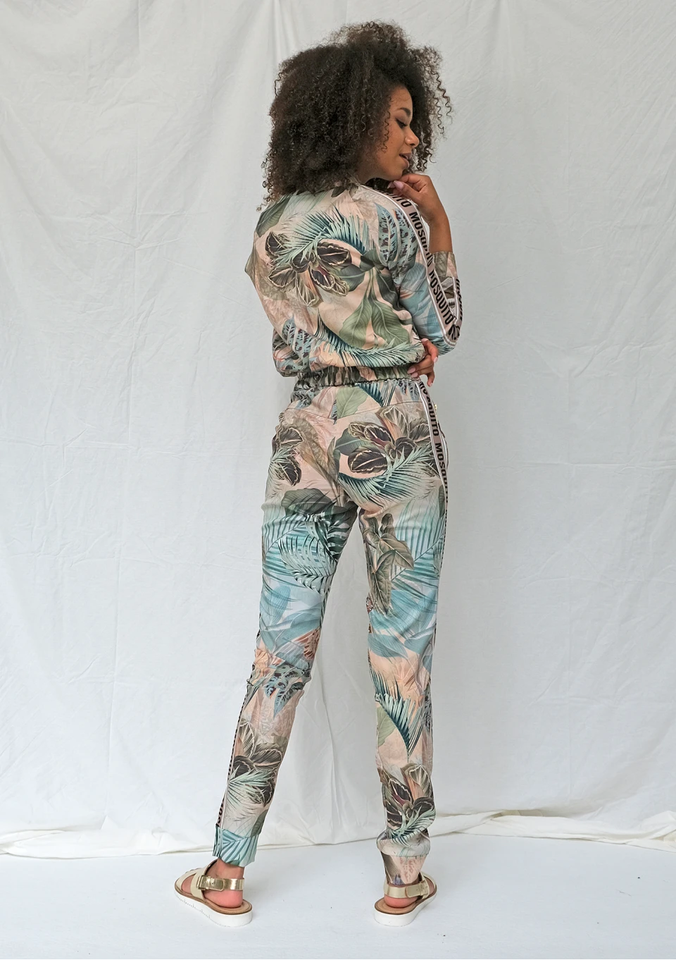 Spodnie z lampasem exotic garden print