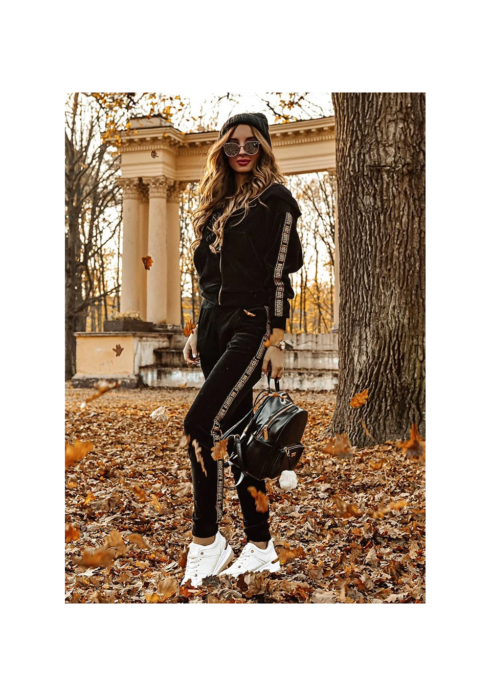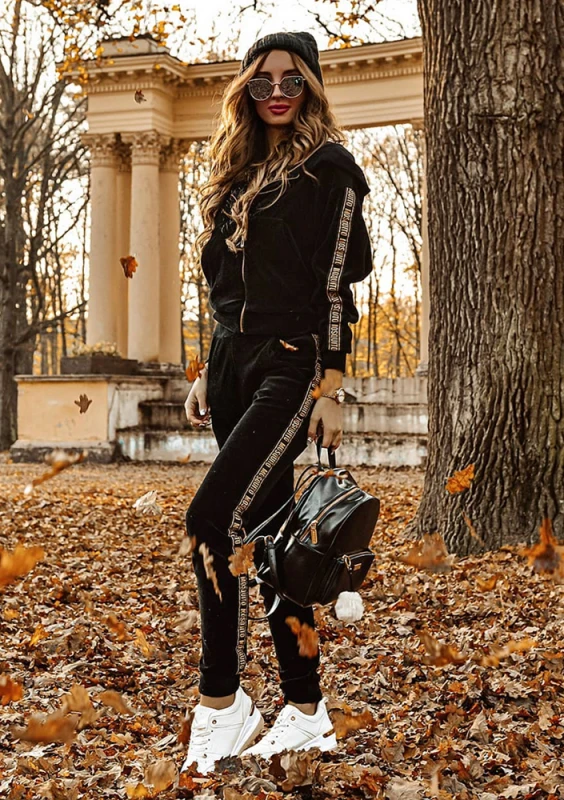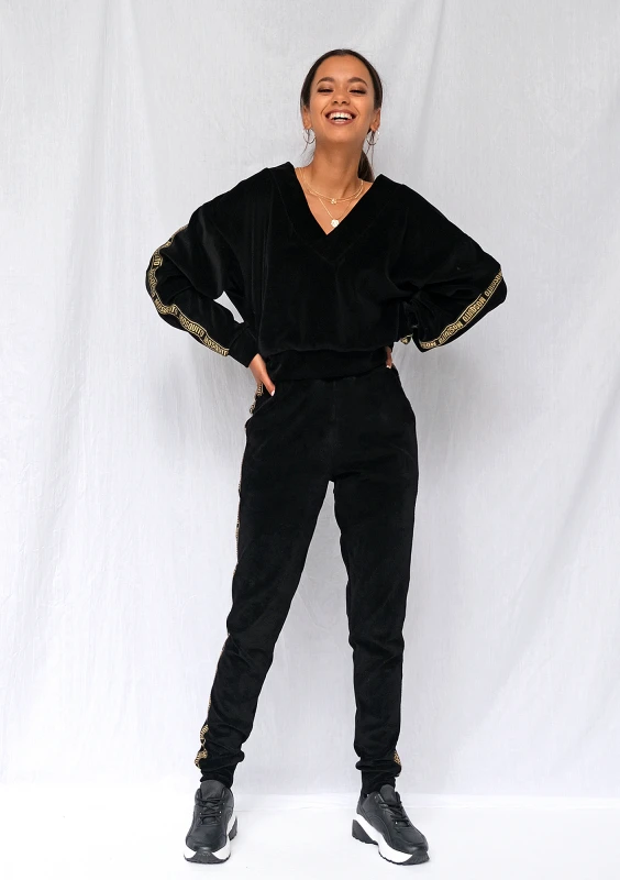 Spodnie z weluru gold logo stripe czarne