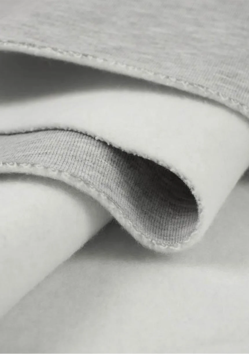 Skład 90% bawełna 10% poliester. Wykonanie z dzianiny dresowej z miękkim meszkiem po wewnętrznej stronie i wykończeniem zapewniającym dodatkową miękkość. Ostanie zdjęcie ukazuje fakturę materiału.