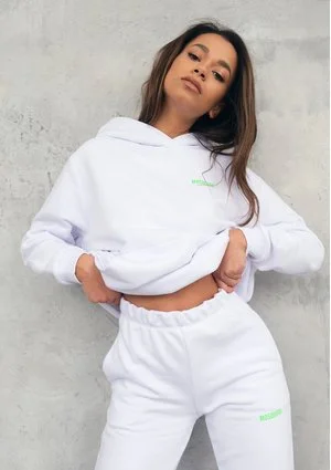 Znakomicie wygodne i stylowe – prezentowane spodnie to idealny dres dla kobiet lubiących estetykę klasycznej bieli. Ubranie wyróżnia się niespotykanym akcentem: limonkowe logo przyciąga uwagę i zachwyca swą oryginalnością. Sportowe spodnie dresowe to must have. Noszone do bluzy od kompletu dają stylowy efekt, a jednocześnie można w nich odetchnąć i prawdziwie odpocząć od elegantszych ubrań. Dresy były, są i będą główną kategorią najwygodniejszych elementów garderoby, na które często przychodzi ochota. Białe spodnie dresowe to gwarancja swobody: w pasie trzymają się na wygodnej, elastycznej gumie, a cały ich krój jest odrobinę luźny. Nogawki są zakończone przyległymi ściągaczami, które pasują do każdych sneakersów. Po bokach znajdziesz kieszenie.